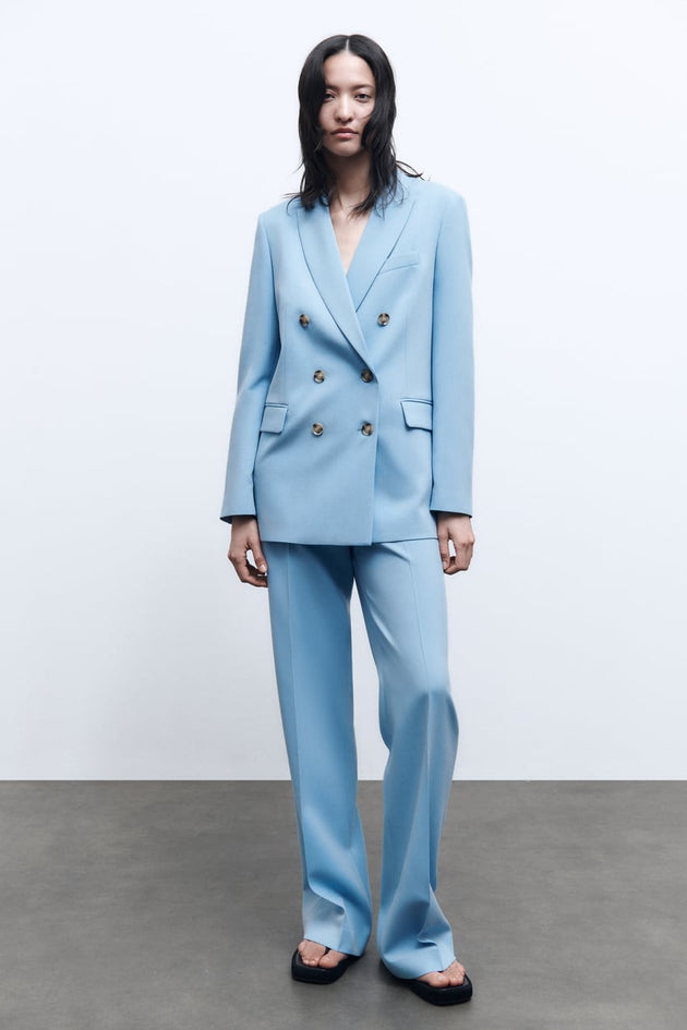 UNICORN Women's suit costume light blue double-breasted blazer trousers with high waist xs s m l xl xxl