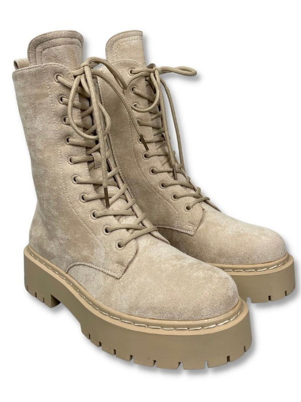 UNICORN Women's high boots with chunky sole leather beige black 36 to 42