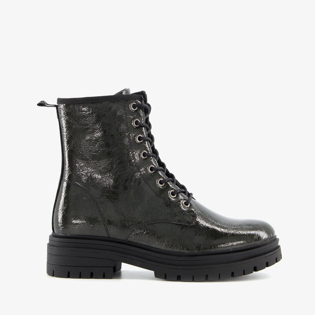 UNICORN Women's high boots with sturdy sole leather army green black brown cognac 37 to 41