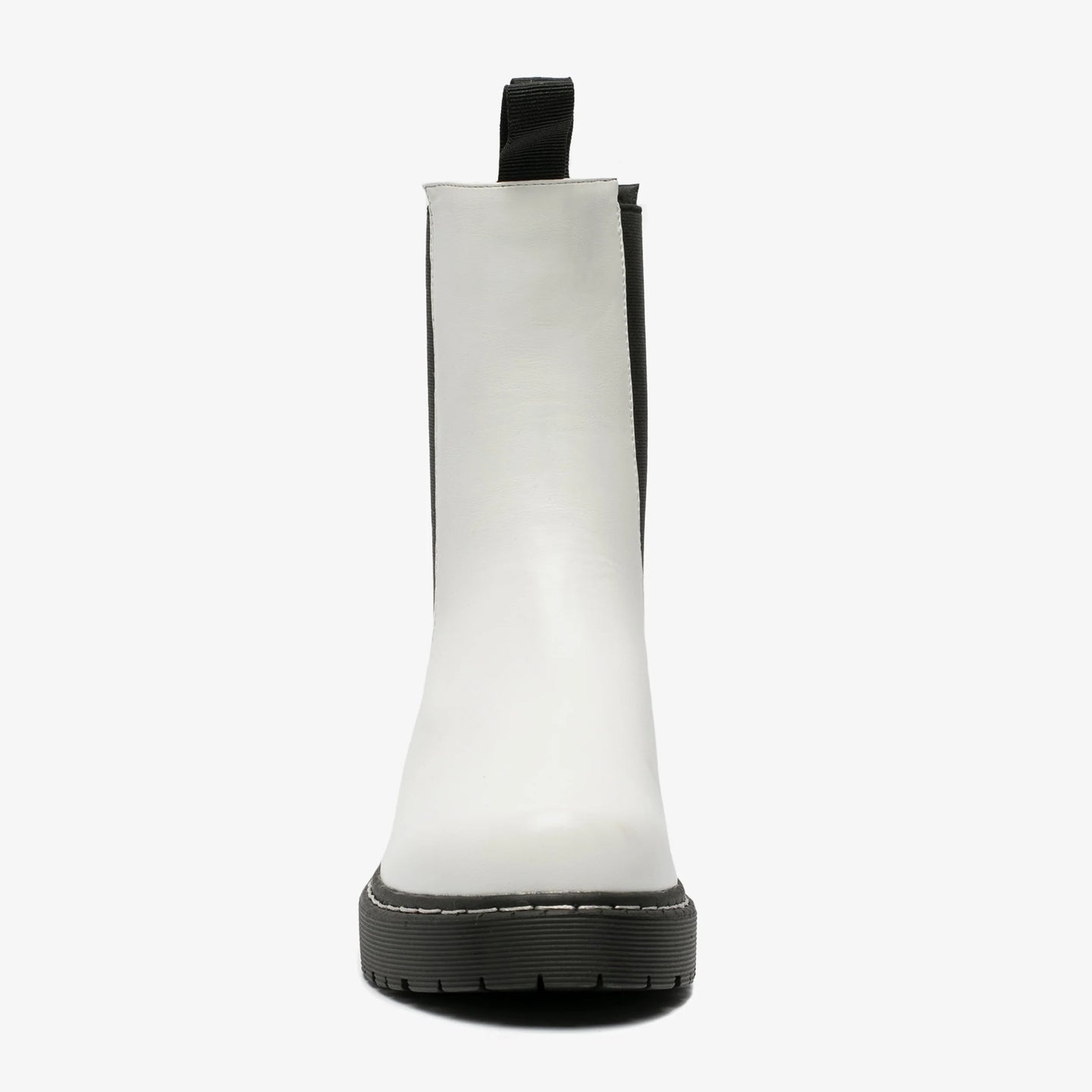 These boots are made of imitation leather, have a textile lining, and a sturdy sole. Elastic side inserts and pull tabs at the front and back make them easy to slip on. The comfortable textile footbed is not removable. These high Chelsea boots have a chunky sole with a heel of approximately 2 cm. The shaft height of the boots is 18 cm.