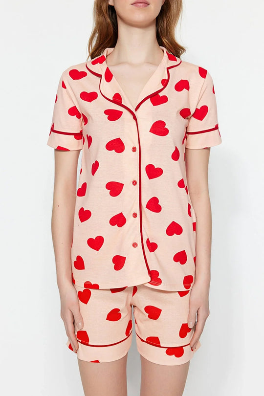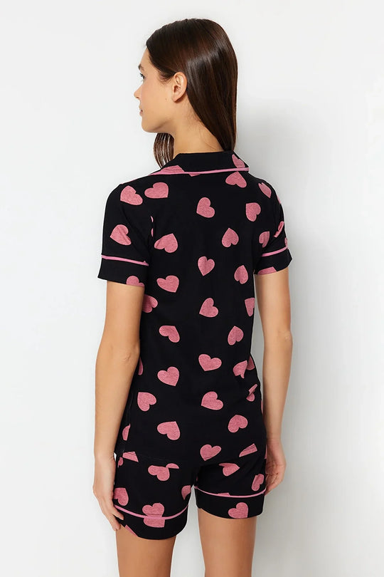 Women's pajamas black pink s m l xl Length: Short Pattern: Heart Fit: Regular fit Fabric type: Knit Color: Pink Leg opening: Straight leg Sleeve length: Short sleeve Sleeve type: Standard sleeve Collar: Shirt collar Collection: Homewear Additional features: No Additional Features Available Occasion: Loungewear Package contents: 2 pcs...Reguliere prijs €39,90Reguliere prijs €39,90 -