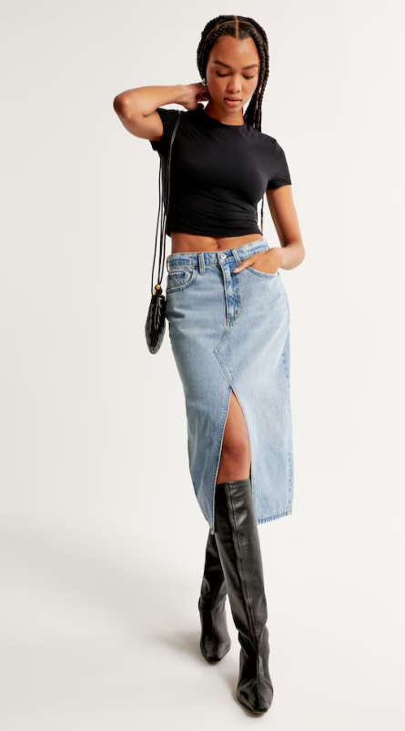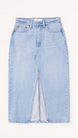 Onze midirok met hoge taille van onze lichte, soepelvallende denim van echt katoen, met trendy split in de voorkant, functionele voor- en achterzakken en een ritssluiting voor een goede pasvorm. geïmporteerd.