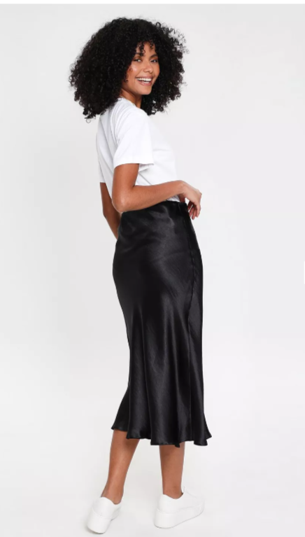 An essential for your wardrobe, this satin midi skirt from Threadbare is just what everyone needs. Cut in a midi length with an elasticated waistband, this satin slip skirt drapes nicely towards the hem for a flattering fit that accentuates your curves. A simple yet staple piece, this satin midi skirt is an absolute must-have for outfit building that feels contemporary yet practical. Model wears UK size 8.