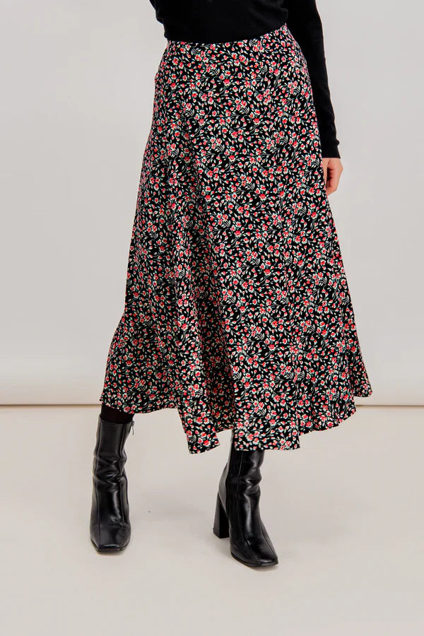 Dames lange rok bloemetje roze zwart xs s m l xl xxl xxxl