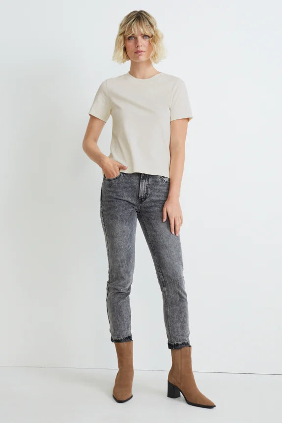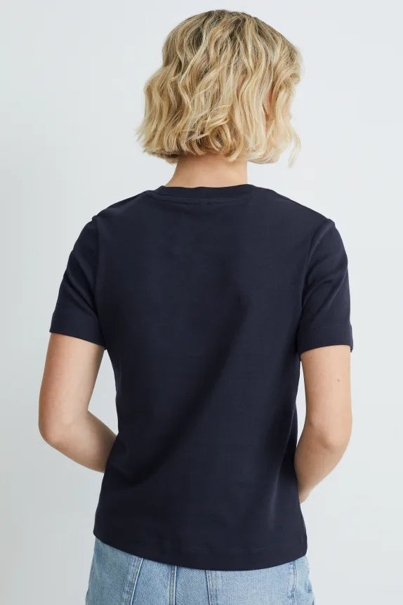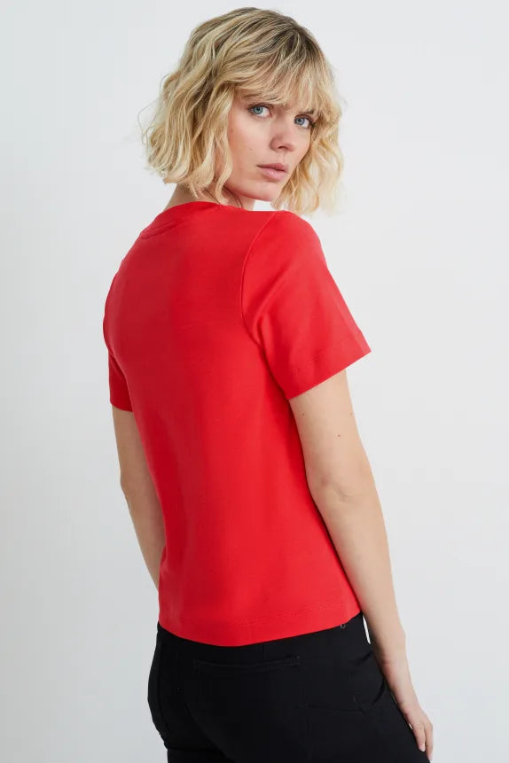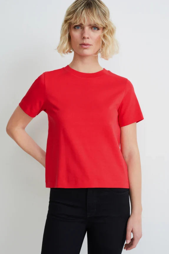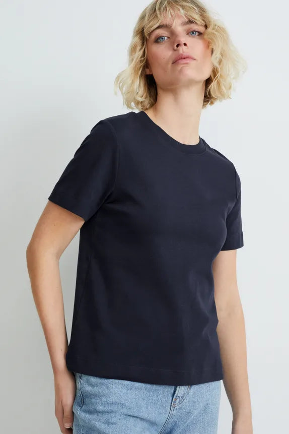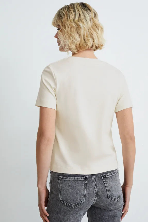T-shirt van zacht jersey met geribd halsboordje.