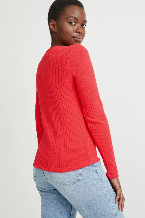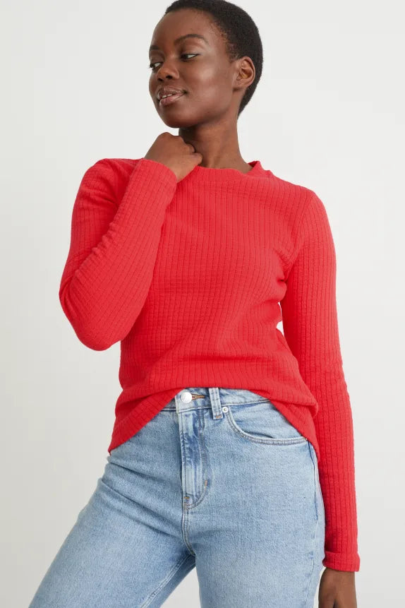 Clemens & August merk dames shirt lange mouwen longsleeve zwart rood xs s m l xl xxl