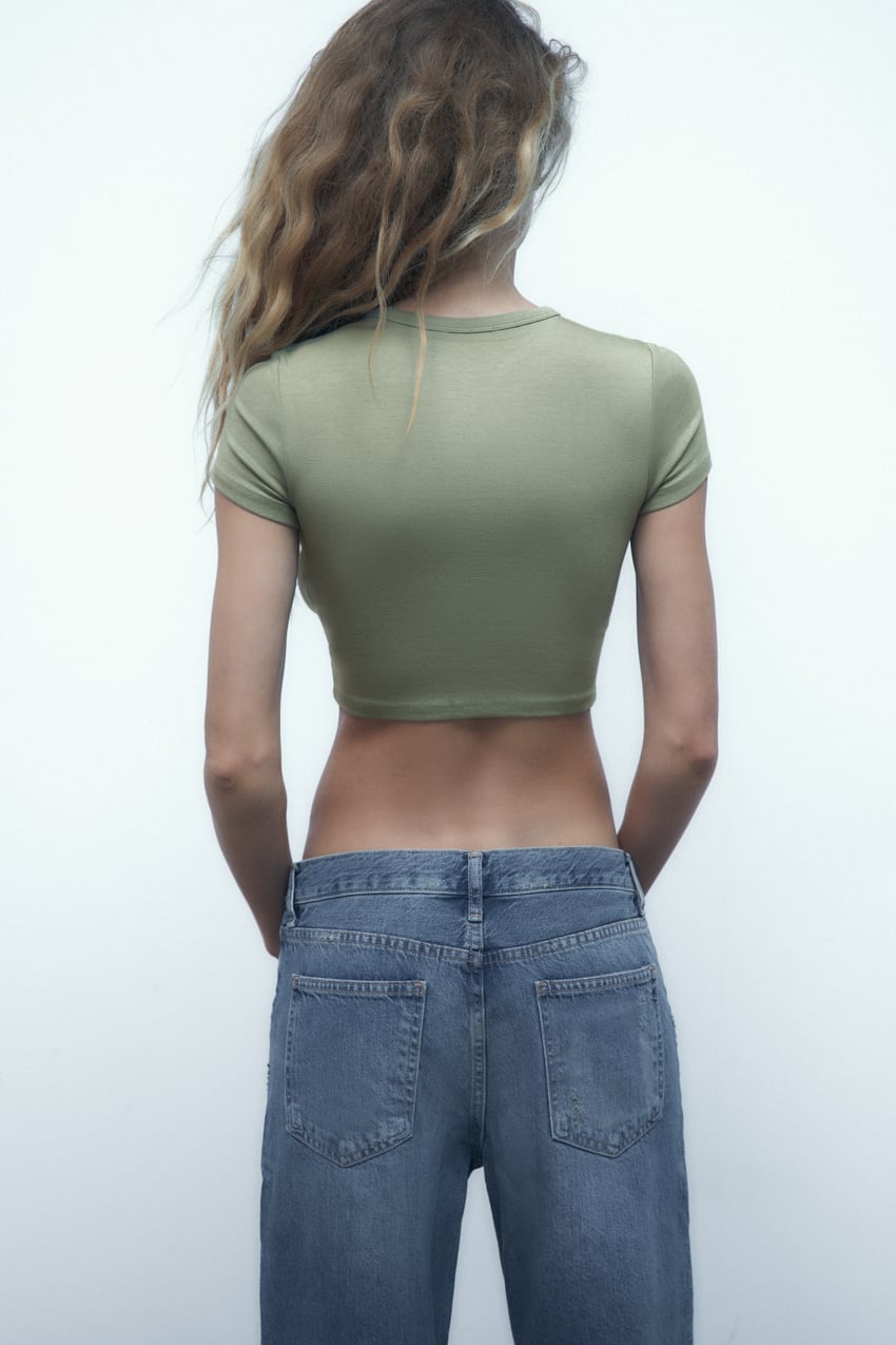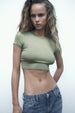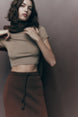 Córdoba Brand Women Crop Top Shirt Cropped Belly Button Sweater Light Brown White Green Khaki Black S M L