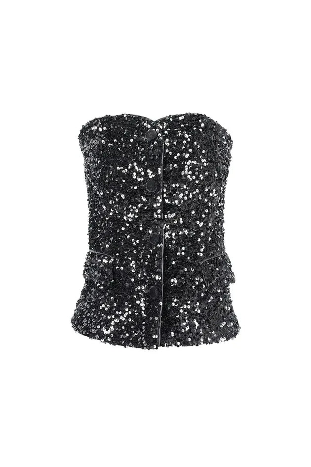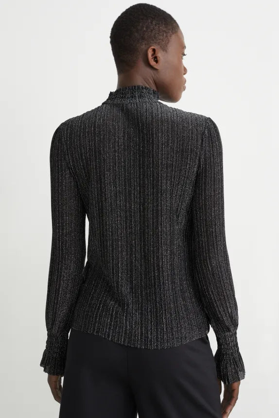 Clemens & August merk dames glanzend zwart top shirt v-hals met pailletten xs s m l xl