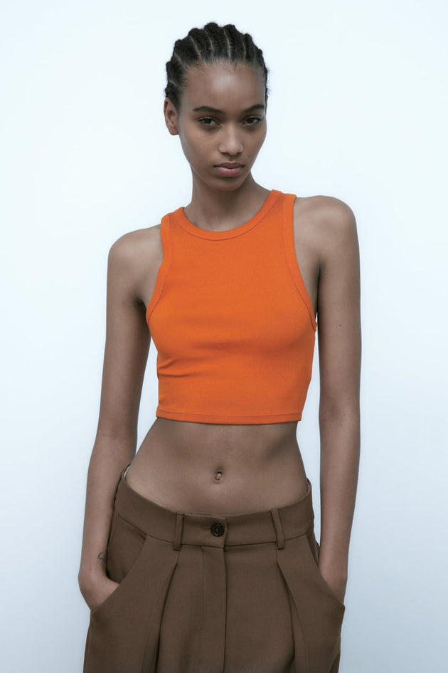 Córdoba merk dames crop top shirt mouwloos cropped naveltruitje khaki wit oranje zwart grijs s m l