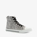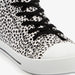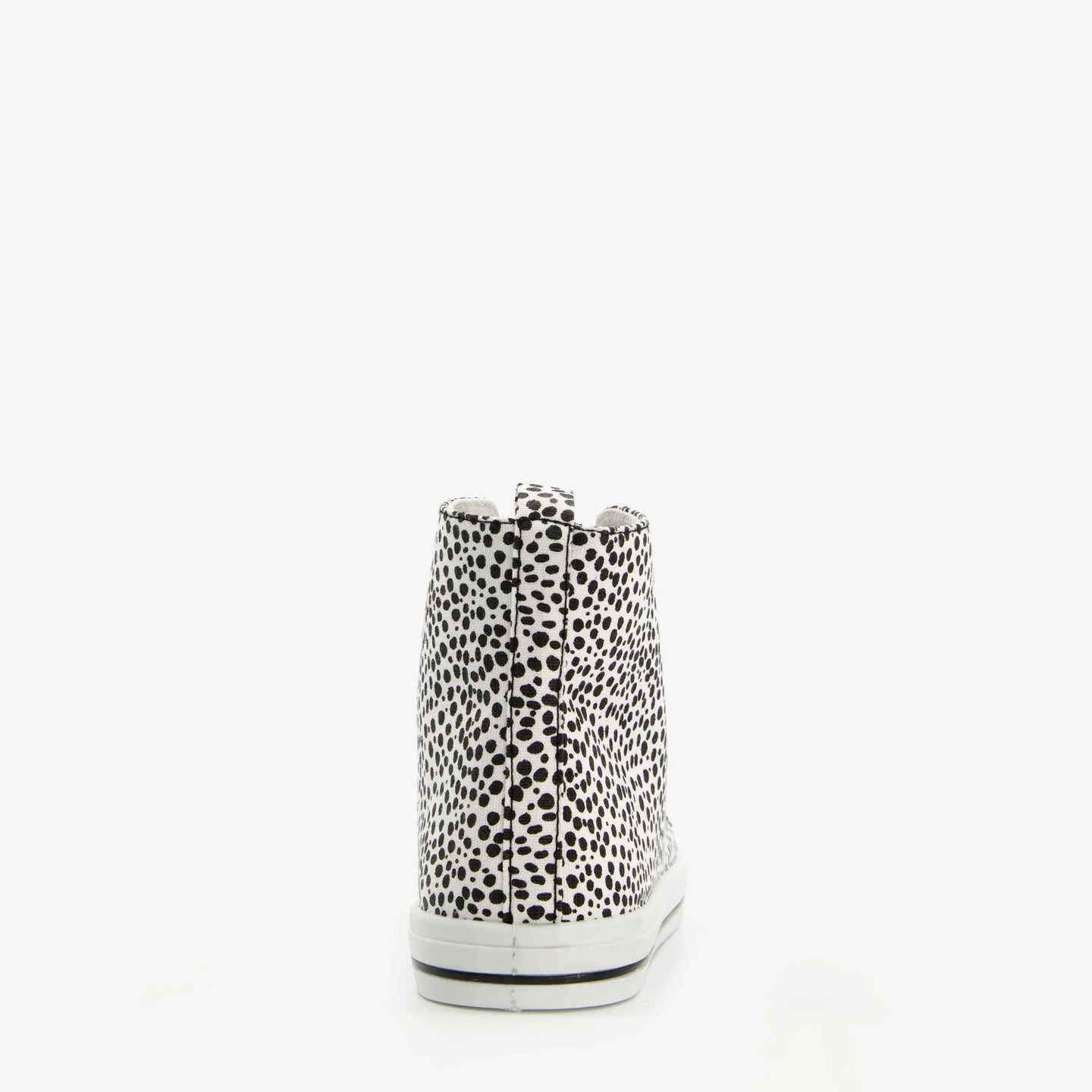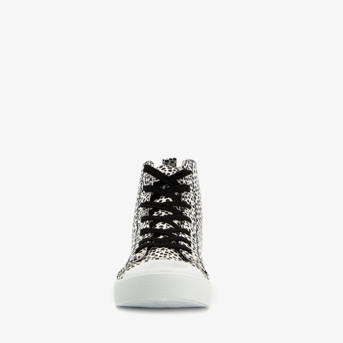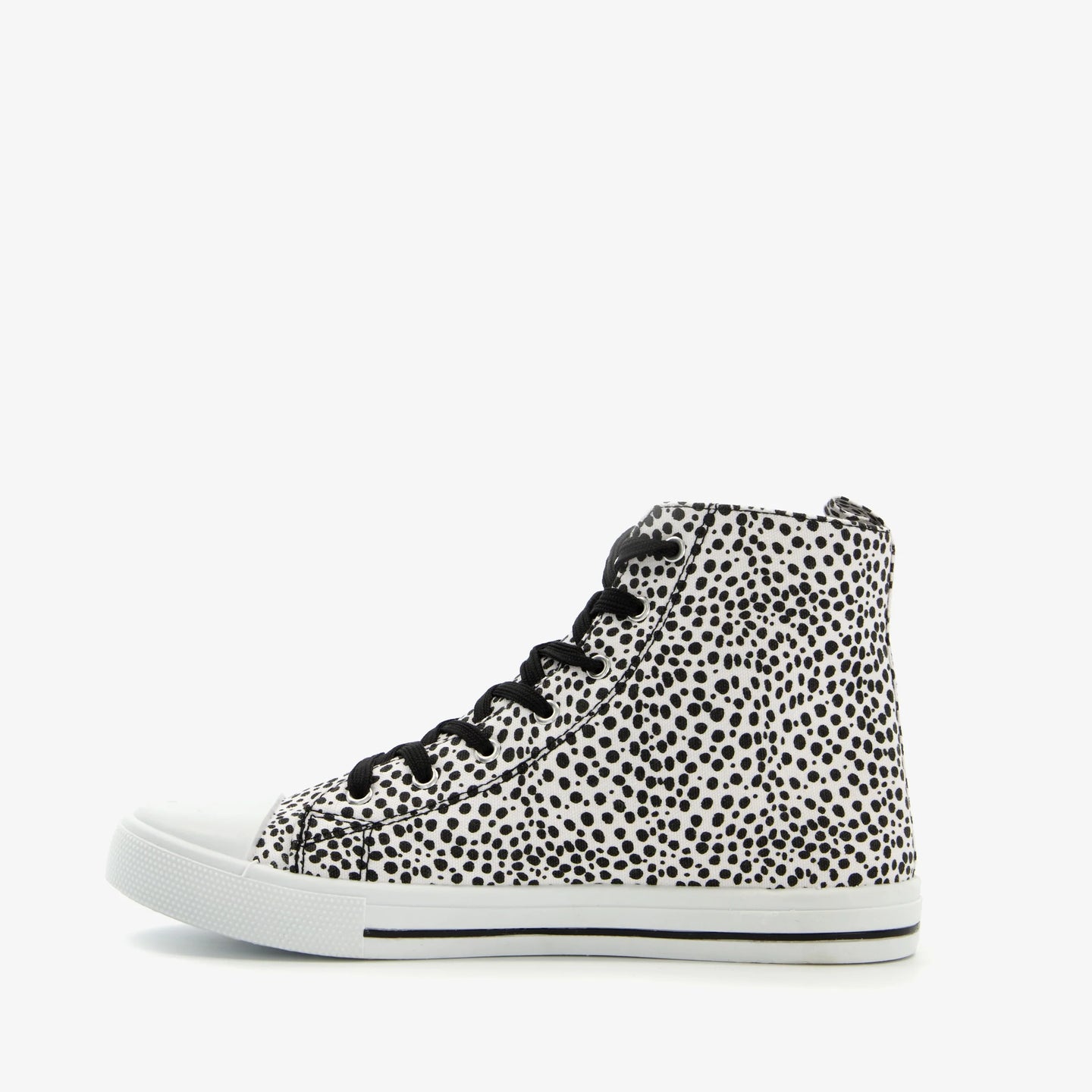 Made of canvas, with a textile lining and a rubber sole, these high-top sneakers have a lace-up closure and a comfortable textile footbed, which is not removable. The white sneakers feature black polka dots on the upper and a striped sole.