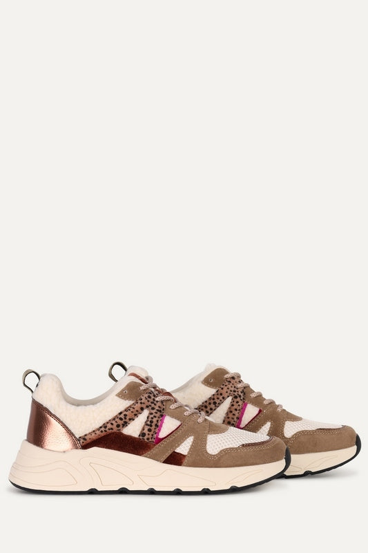 Description Features● POSH by Poelman sneaker in taupe/burgundy● Velvet and teddy detail● Off-white mesh panels● No removable footbed Fit● This shoe fits true to size; we recommend ordering your regular size. Material● Composition: PU / Textile...Reguliere prijs €30,00Reguliere prijs €30,00 -