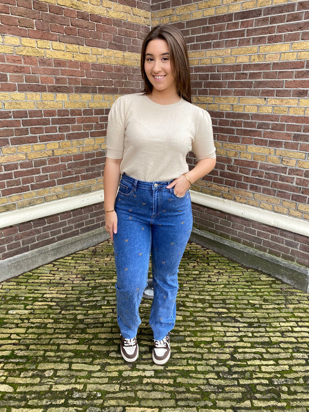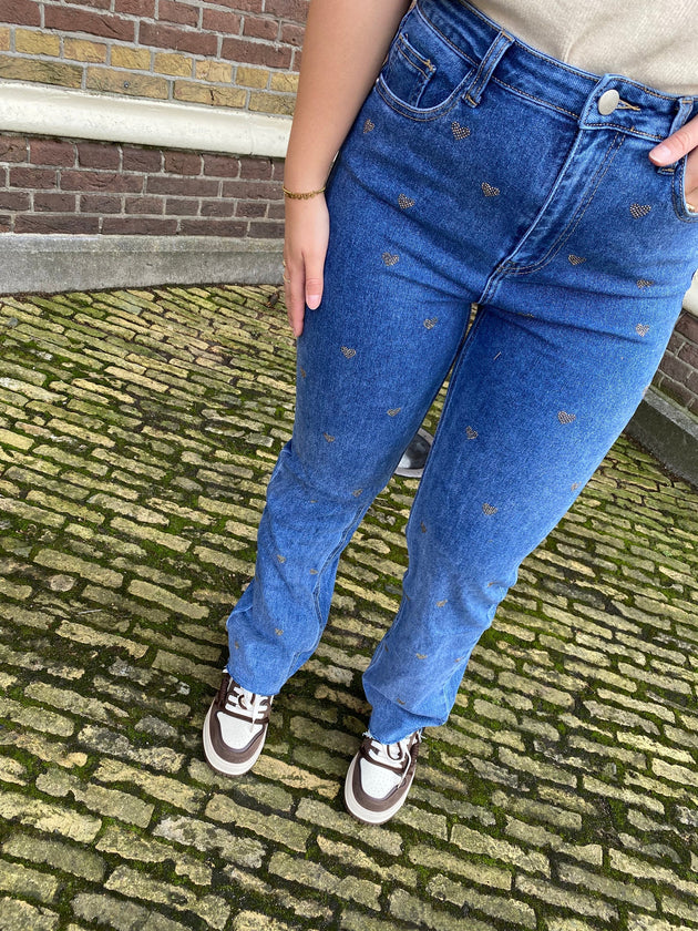 Dames spijkerbroek blauw met hartjes xs s m l xl
