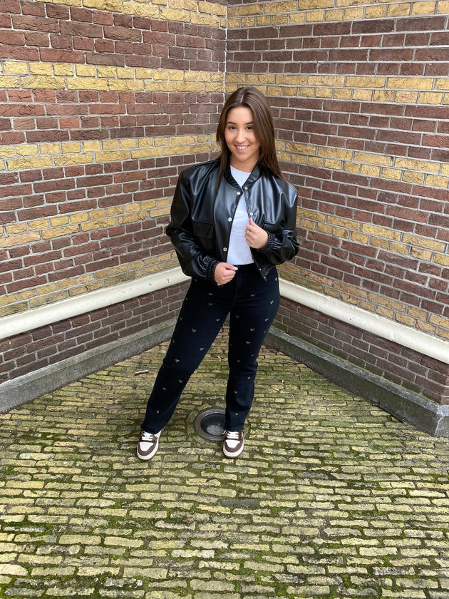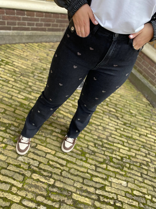 Dames spijkerbroek hartjes patroon zwart xs s m l xl