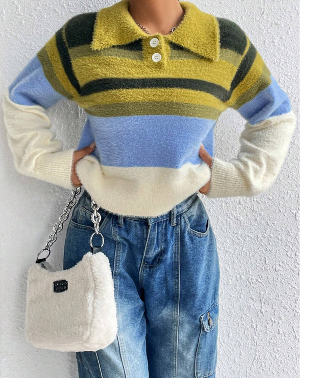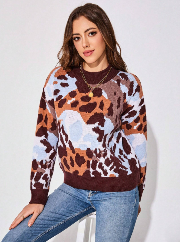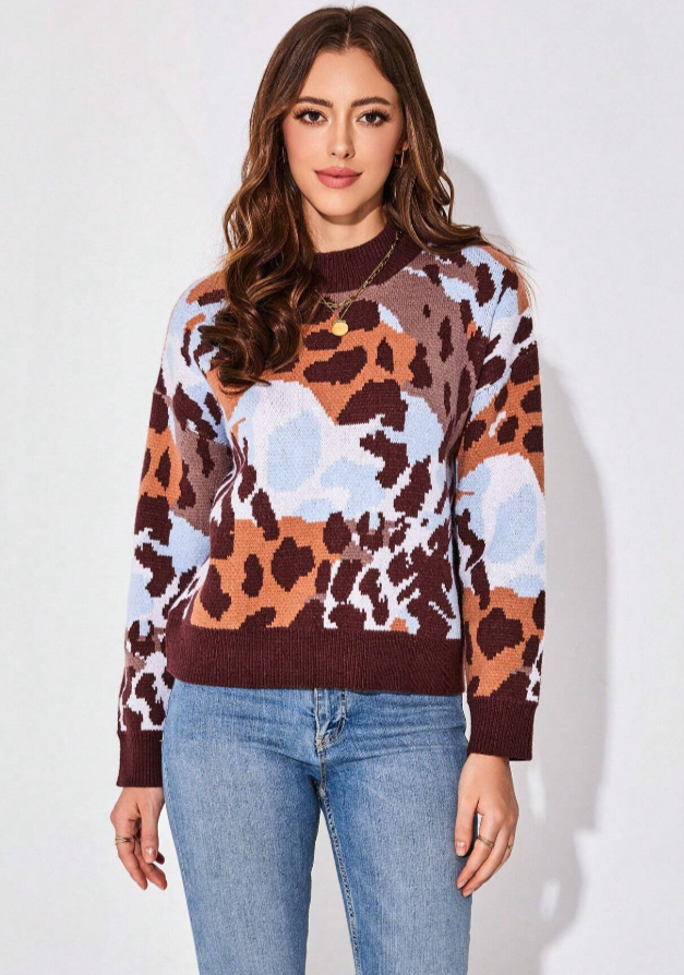 UNICORN Women's sweater panther print dark brown light blue s m l