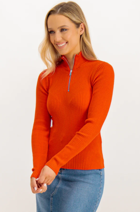 UNICORN Women's sweater orange knitted skipper's neck xs s m l xl
