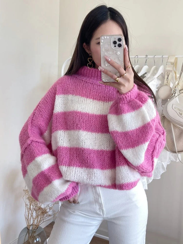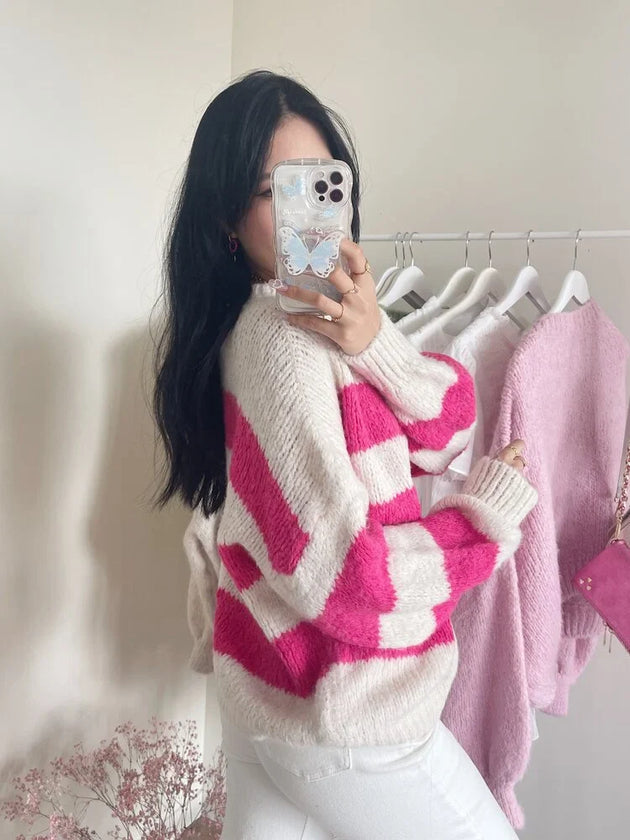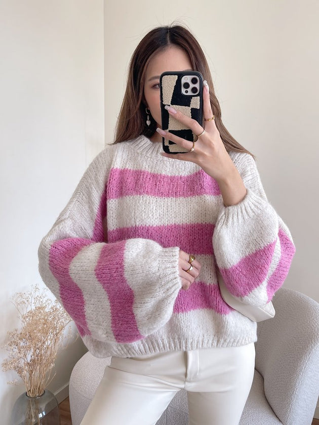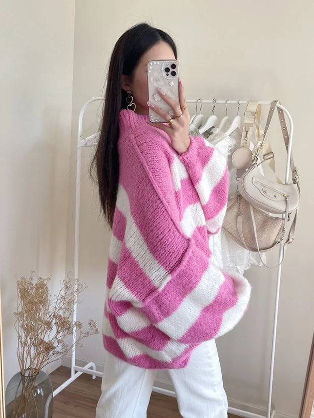 UNICORN Women's sweater stripes pink white s m l
