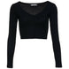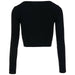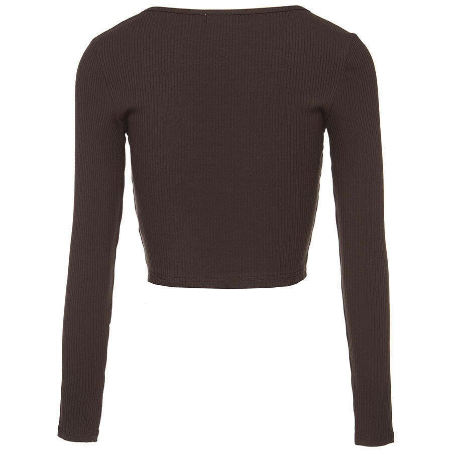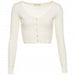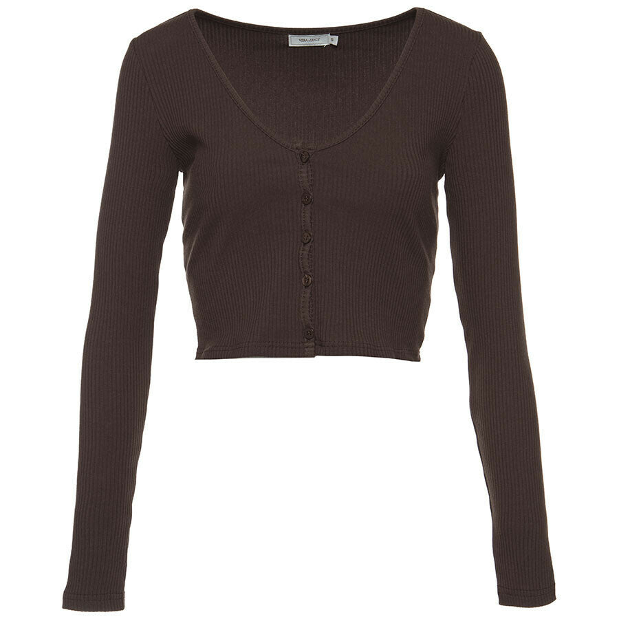 The cardigan is cropped and fastens with buttons. It's made of a comfortable, stretchy fabric. It looks great with wide-leg jeans and boots or sneakers.