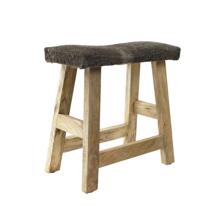 • Handcrafted wood and gray cow leather construction