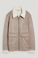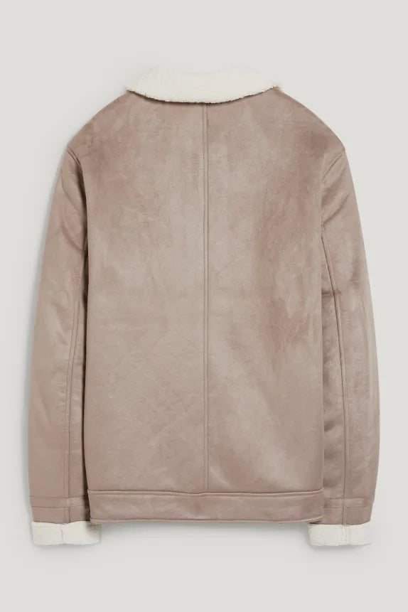 Shearling jacket in soft faux suede, featuring flap pockets with buttons and a teddy fur lining.
