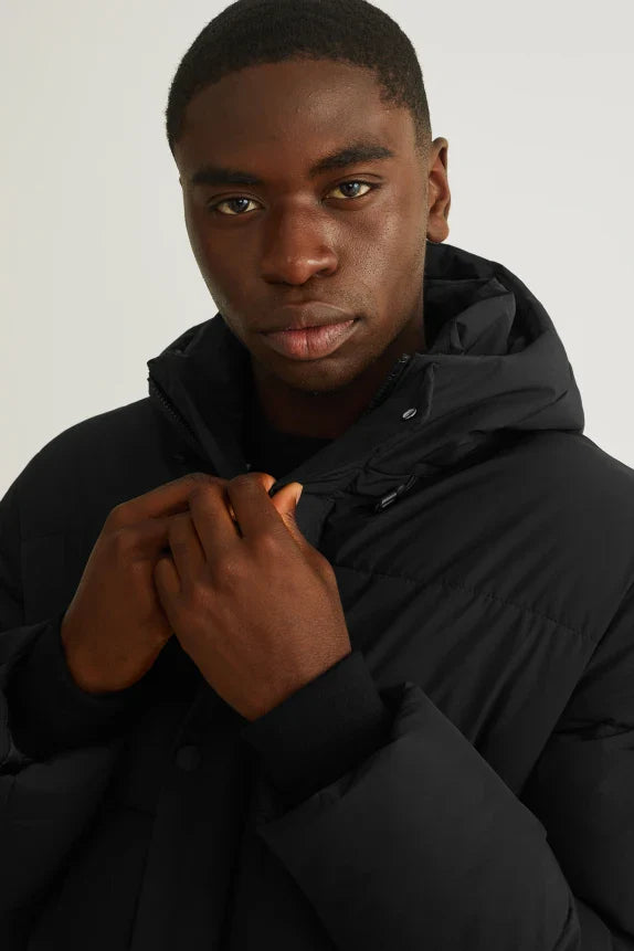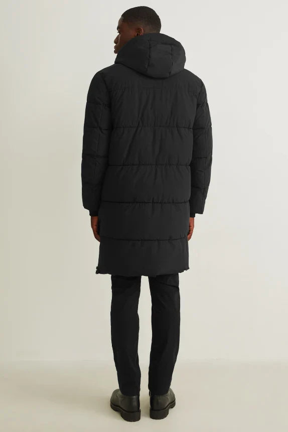 Clemens & August Brand Men's Long Padded Coat Hooded Black S M L XL XXL XXXL