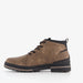 Brown lace-up boots for men. Made of imitation leather and suede, an imitation leather interior and a rubber sole. The boots have a lace-up closure and a removable textile footbed.