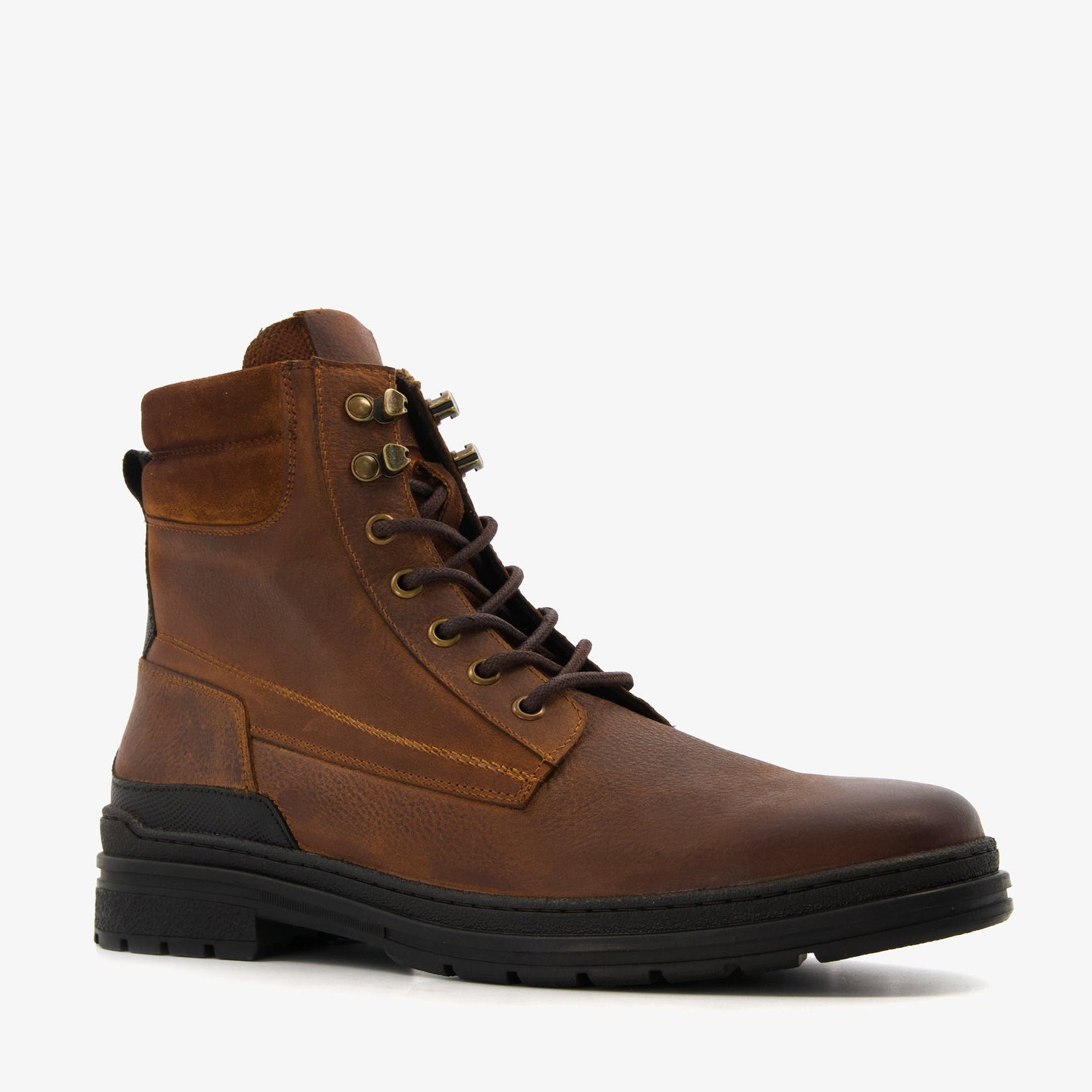 lace-up boots for men. Made of leather with a leather lining and a sturdy rubber profile sole. Equipped with a lace-up and zip closure for a good fit and heel loops for easy entry. The comfortable leather footbed is not removable.