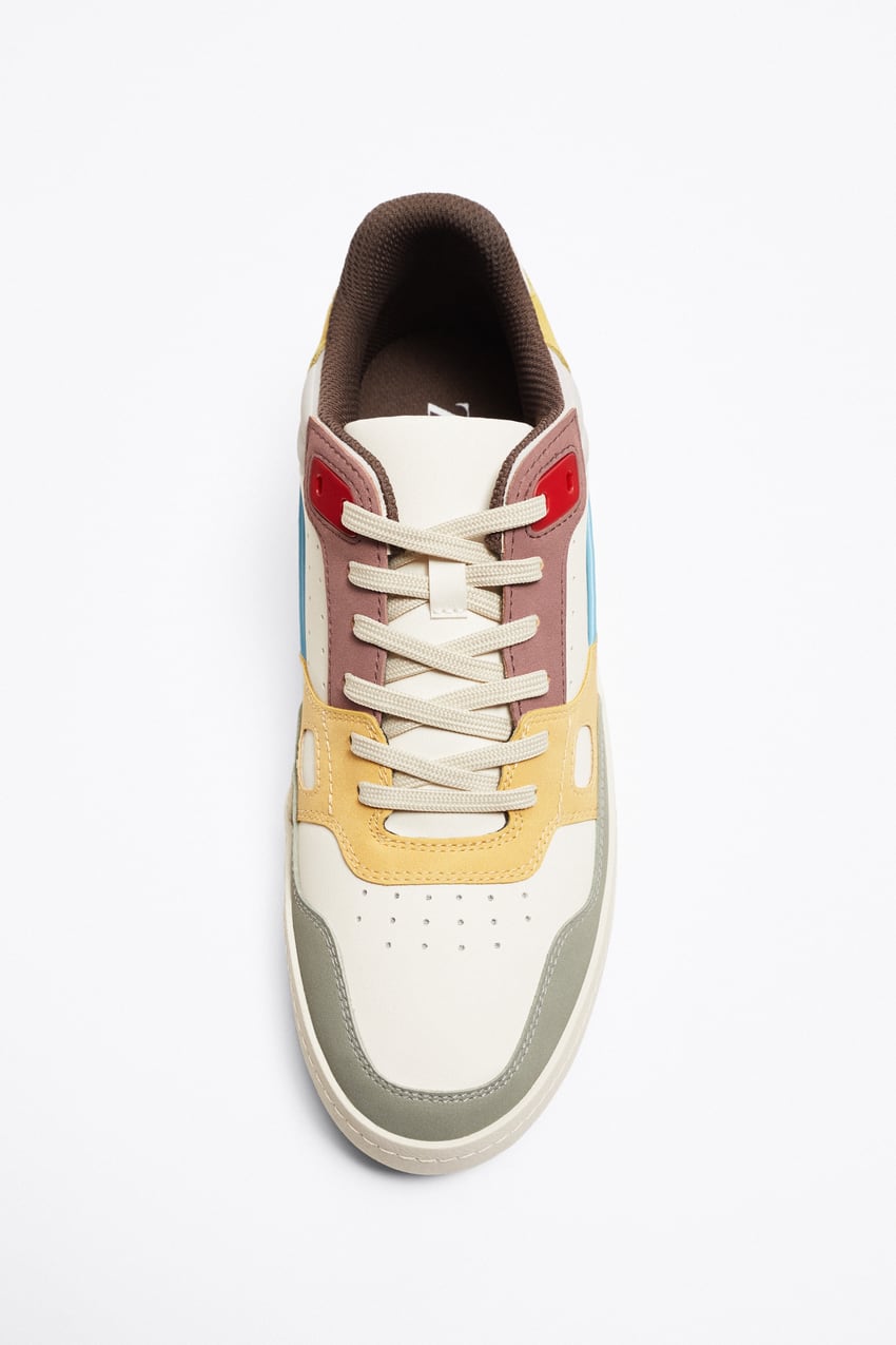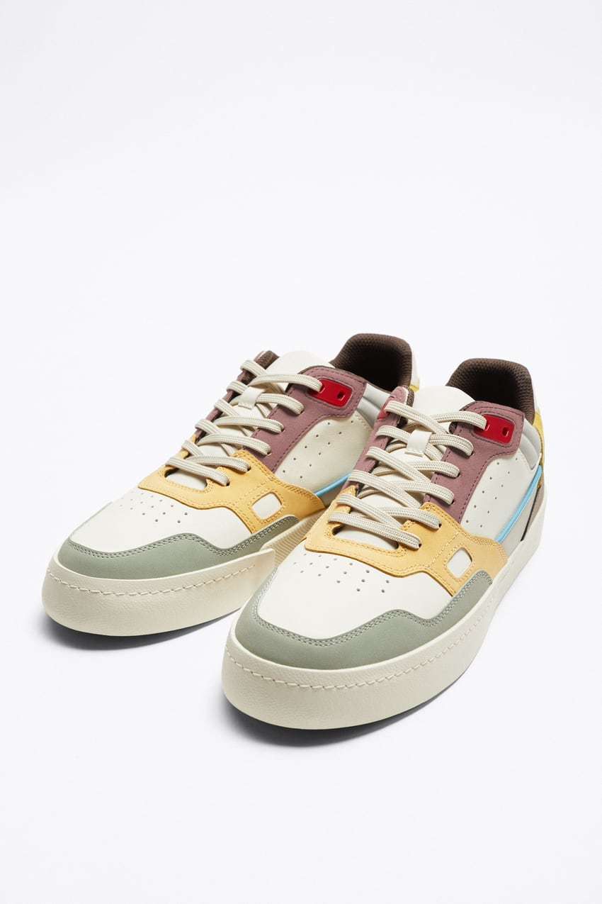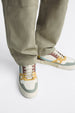 Sneakers. Various materials, pieces, and colors on the upper. Six-eyelet upper. Slightly voluminous sole. Retro design.