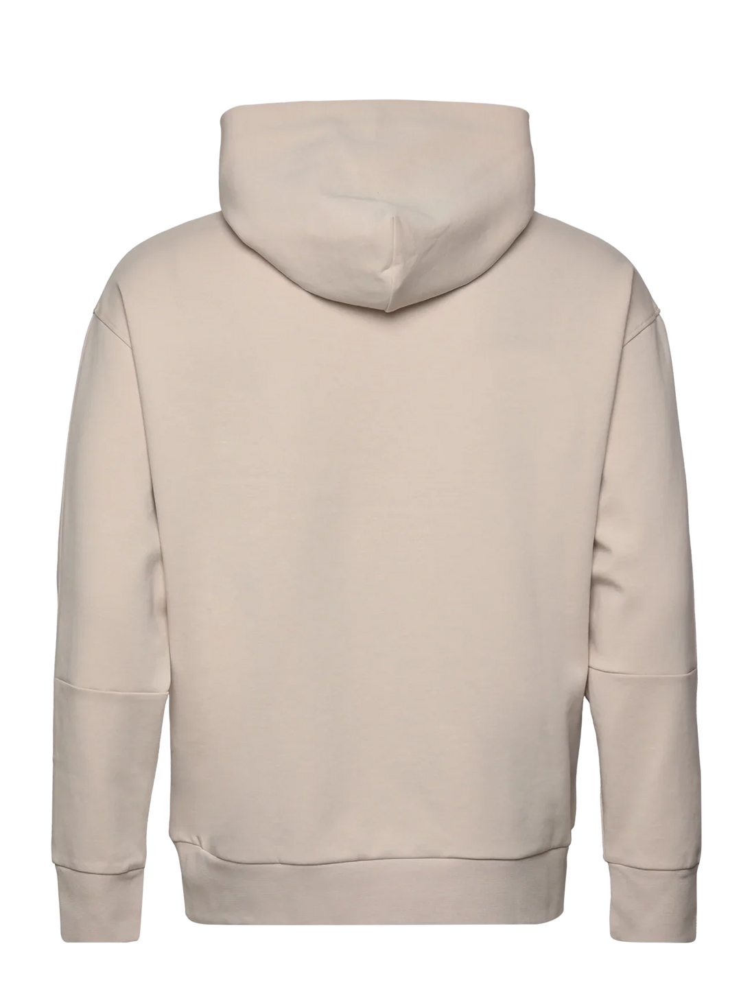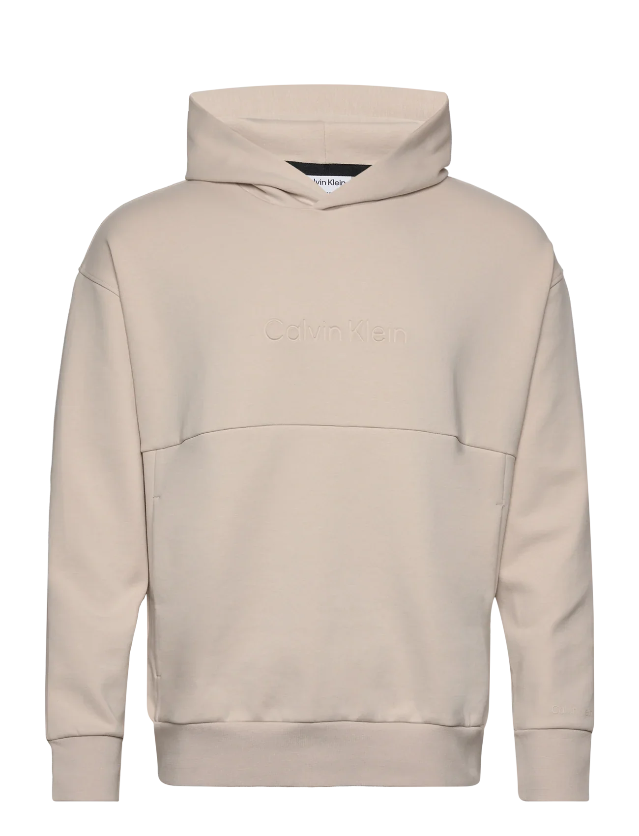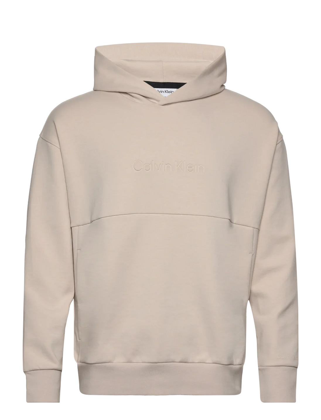 A zip-up hoodie by Calvin Klein. Made of 50% organic cotton, 30% cotton, 16% polyester, and 4% elastane.