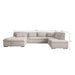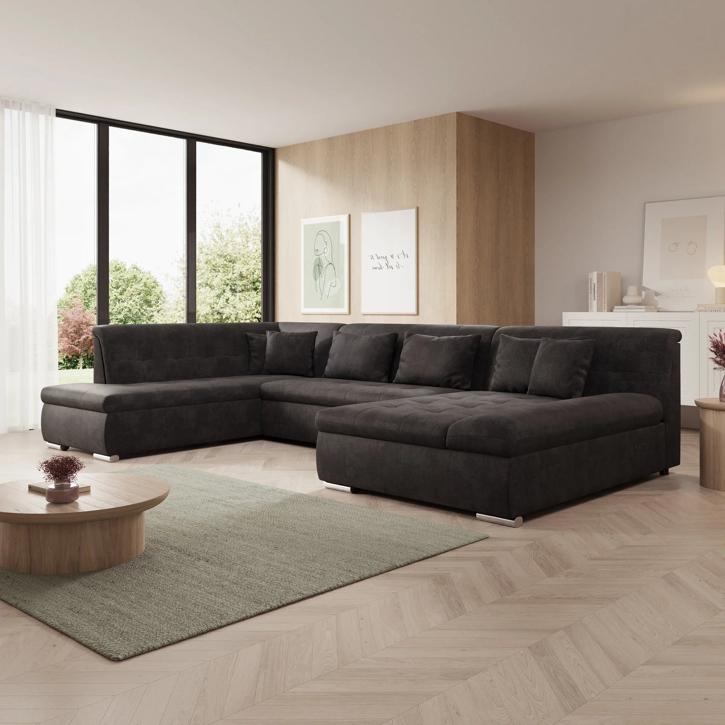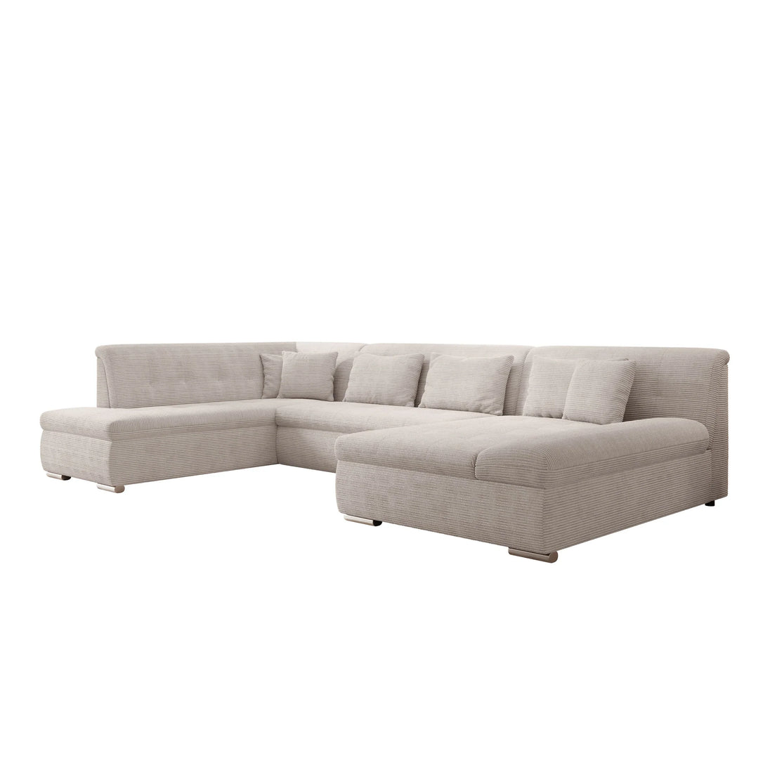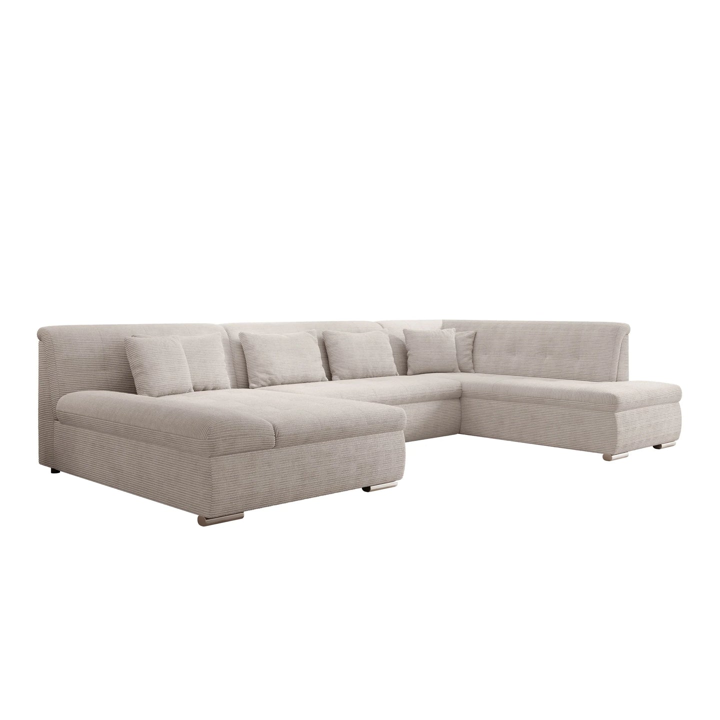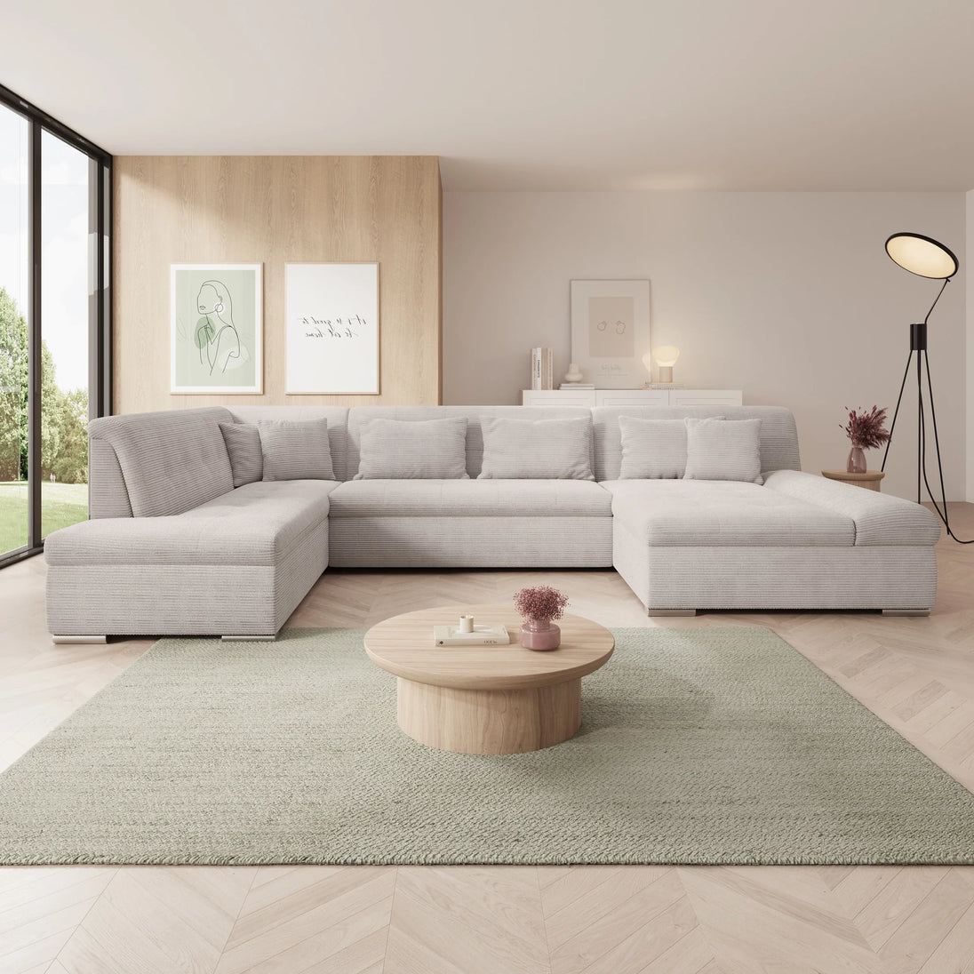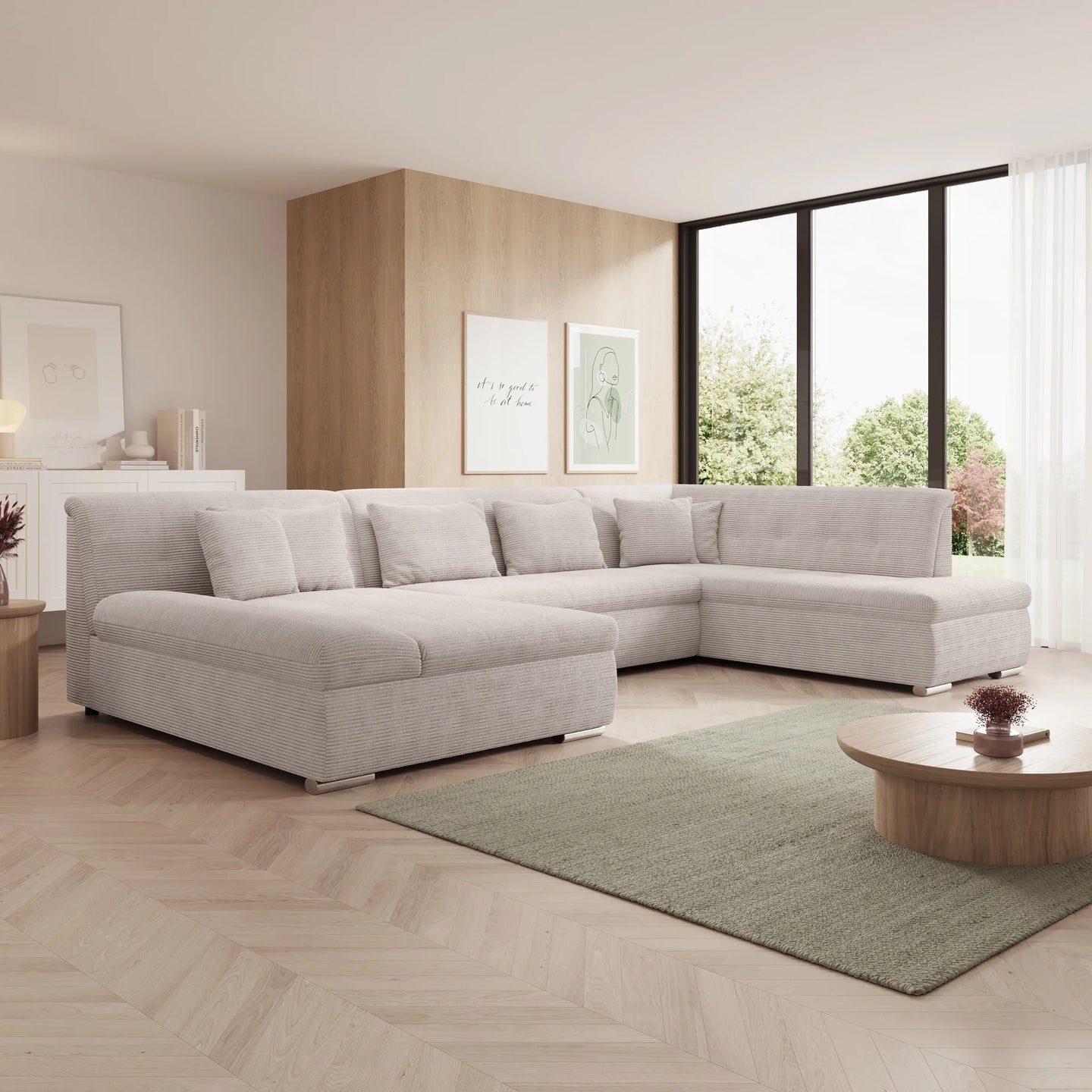 This corner sofa is a spacious and functional U-shaped sofa, designed for everyday comfort and practical use. Thanks to the soft ribbed fabric and thoughtful layout, this sofa fits perfectly into a modern interior.