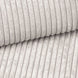The sofa has a sleek design with fixed seat and back cushions for a calm, elegant look. The six included decorative cushions provide extra comfort. The sofa is upholstered in a beige ribbed fabric that is soft to the touch yet durable.