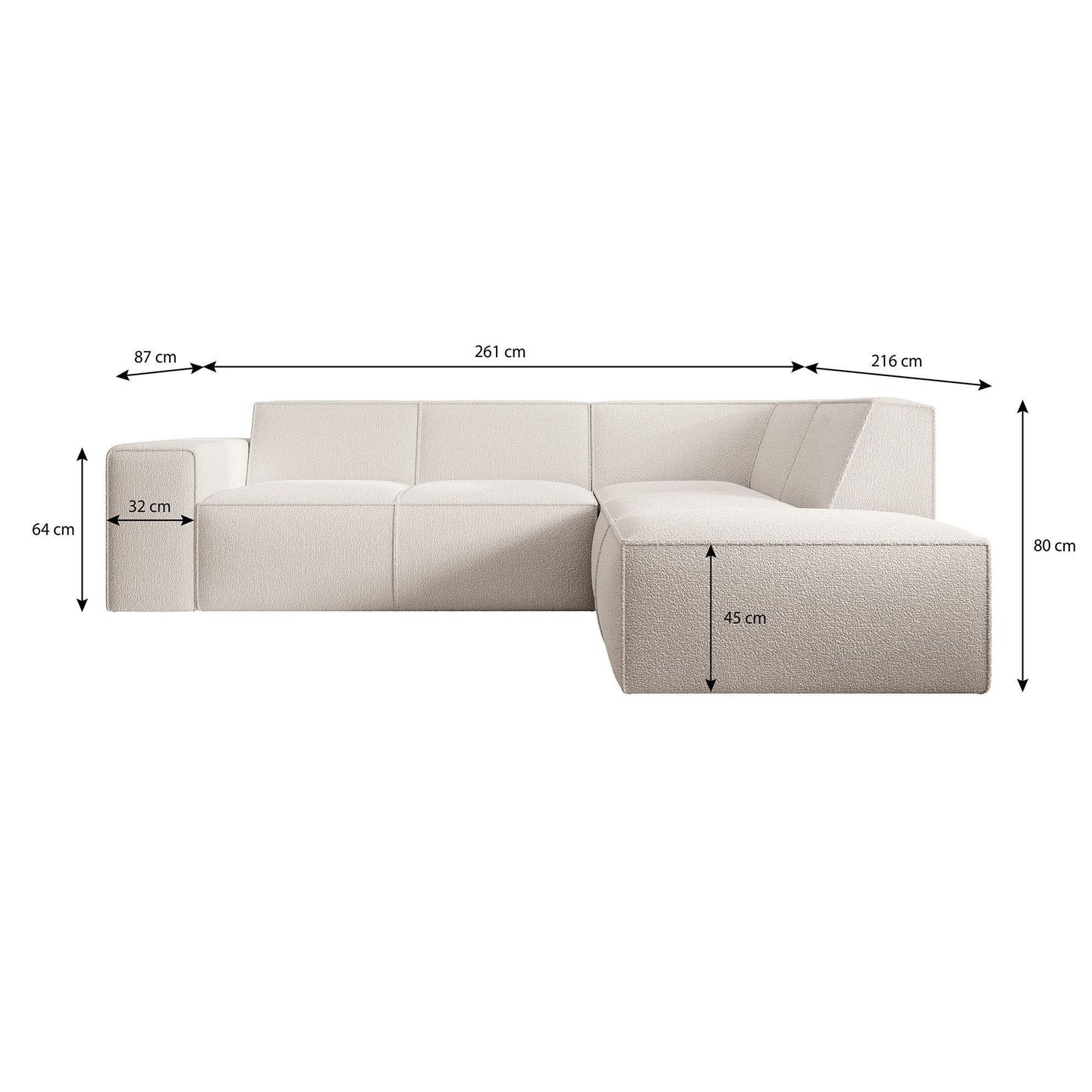 UNICORN Corner sofa 4-seater with chaise longue Teddy fabric gray beige white Width 261 cm Height 80 cm Depth 216 cm