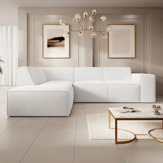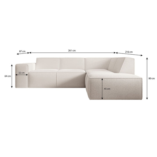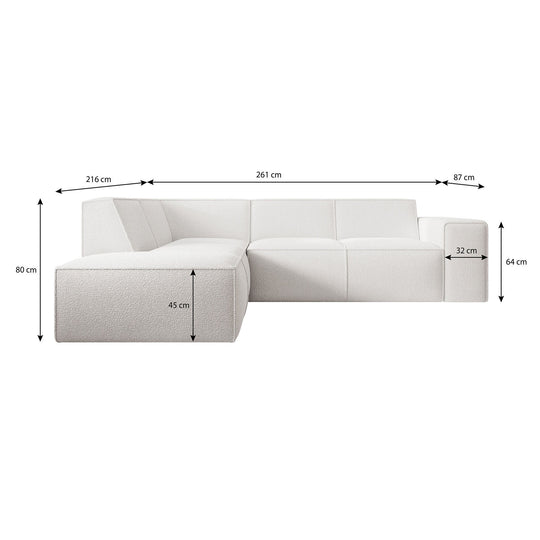 UNICORN Corner sofa 4-seater with chaise longue Teddy fabric white Width 261 cm Height 80 cm Depth 216 cm