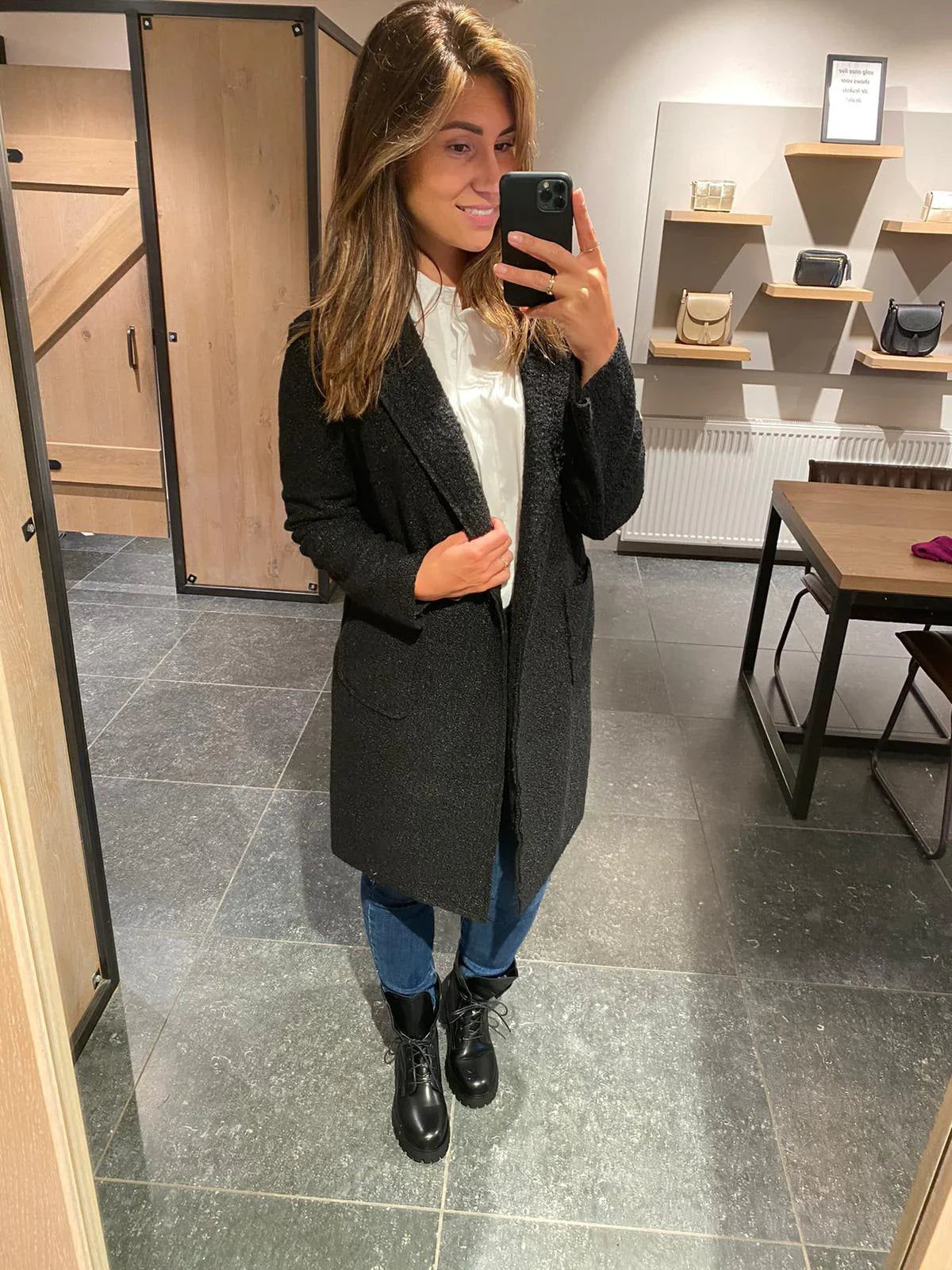 Ladies long coat dark gray s