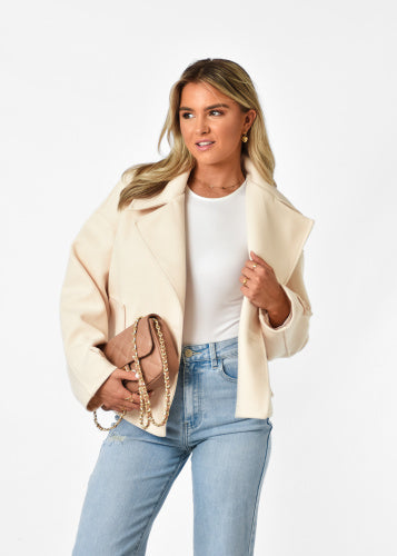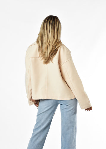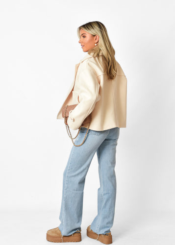Dit jasje heeft een mooie cropped fit die ongeveer valt tot op de heup. Hij sluit door middel van knopen, heeft twee zakken en bandjes als detail op de mouw.