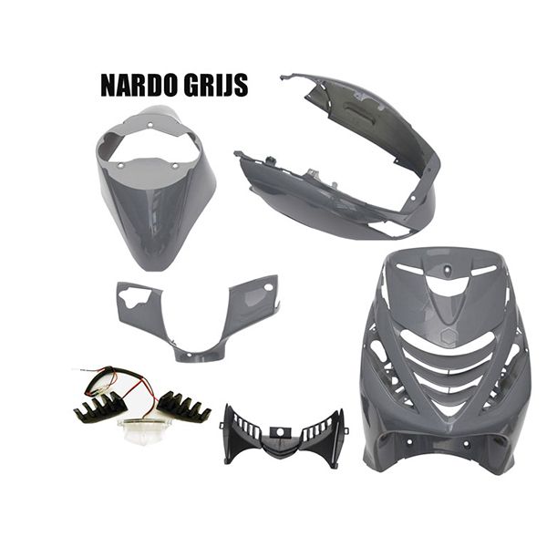6-piece Power1 Sp body kit for Piaggio Zip. This body kit includes LED grille lighting.