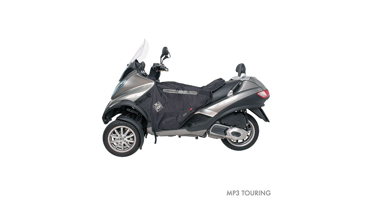 Suitable for the following models: Piaggio Mp3 touring/350/400/500/Hybrid from 2014-2022. Piaggio Mp3 300 from 2014-2018. Piaggio Mp3 HPE 500 sport after 2019. Gilera Fuoco. The evolution of the original Termoscud leg cover, equipped with the innovative 4-season system, allowing it to be used all year round without removing it from the scooter. In winter, it protects you from rain, cold and wind, without flapping at high speeds thanks to the patented inflatable SGAS anti-flap system. In summer, the winter part is detachable. SKU