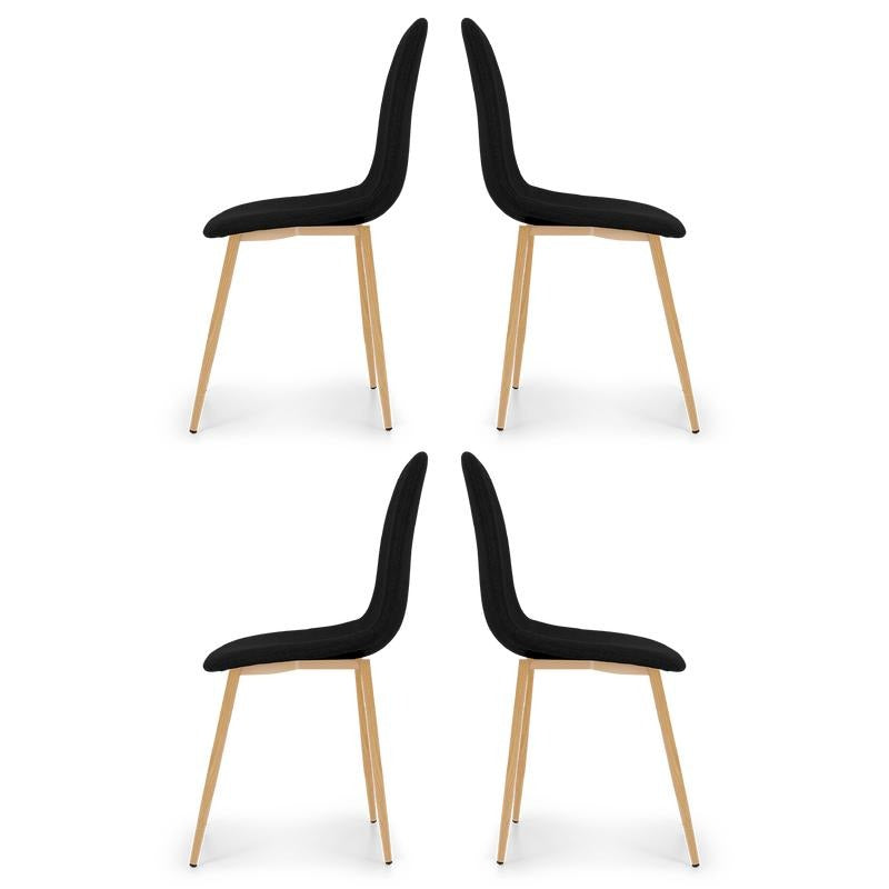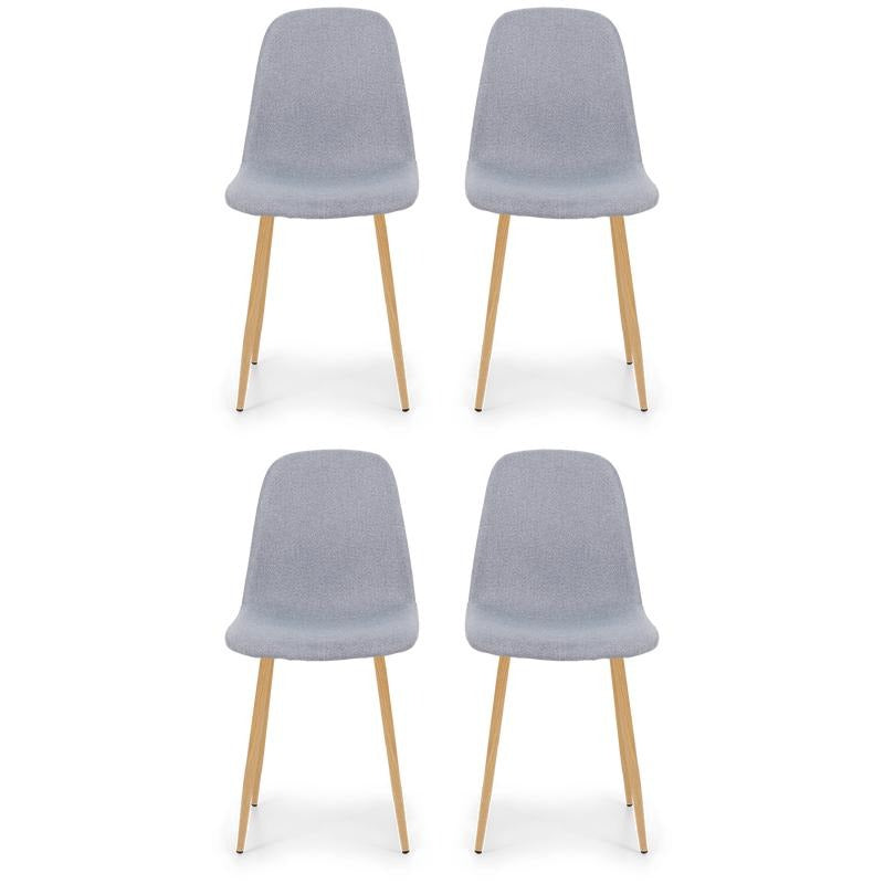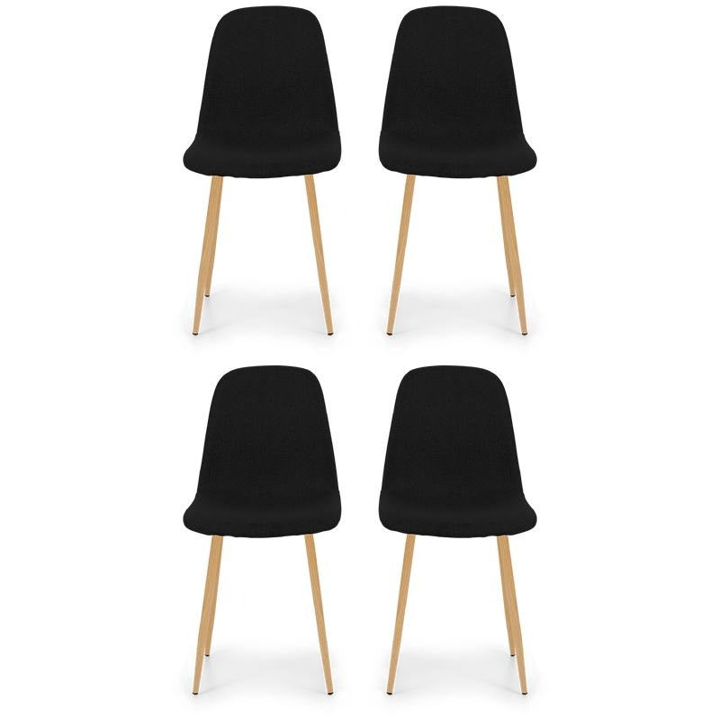 This charming bucket chair will look great at any dining table. It comes in a set of four, so you can immediately invite friends or family over for dinner! The fabric upholstery on the seat and backrest is wonderfully soft, making it comfortable for hours of sitting. The metal legs with a wood look have caps, so you don't have to worry about scratching your floor.