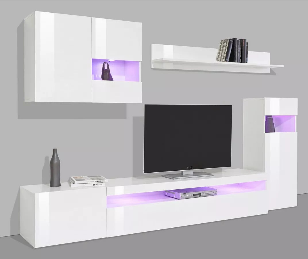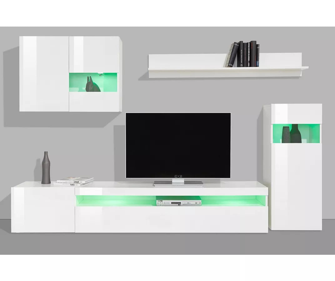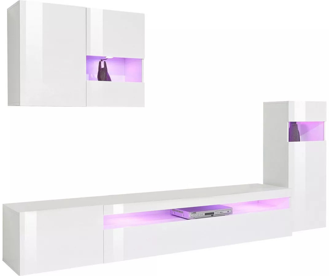 UNICORN TV furniture wall unit high-gloss white (set of 4) with mood lighting Width 200 cm