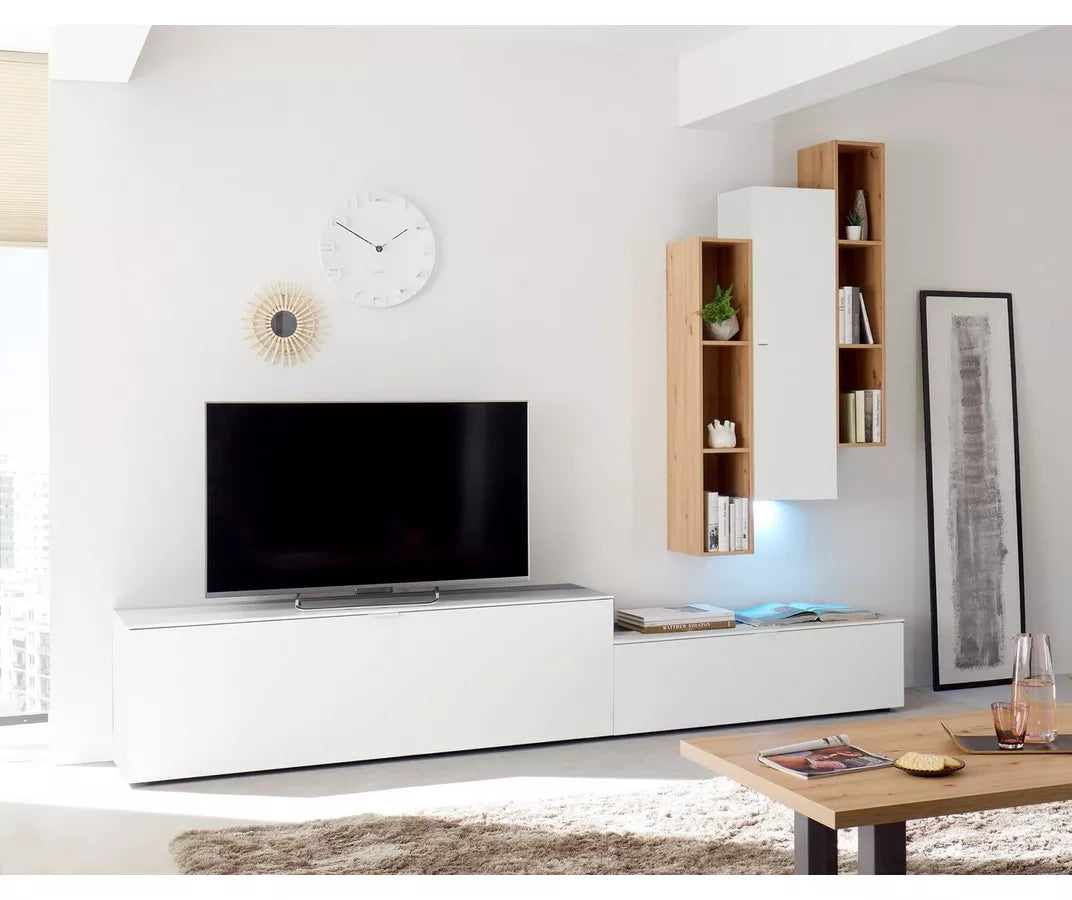 UNICORN TV furniture wall unit with glass high-gloss white 200 cm