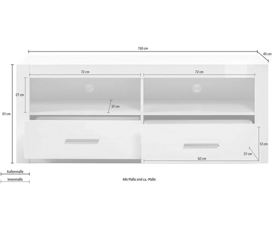 UNICORN TV furniture wall unit high gloss white 150 cm