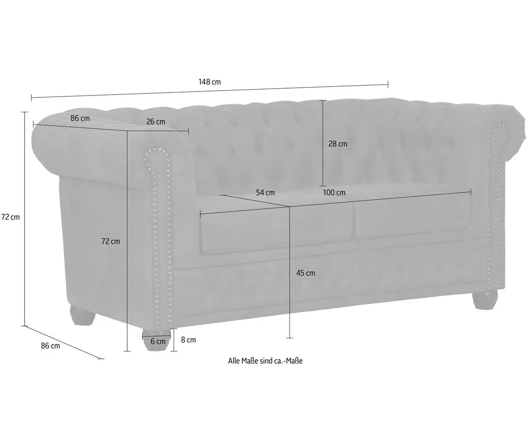 UNICORN Two-seater sofa Chesterfield style leather brown black dark brown Anthracite Width 148 cm Depth 86 cm Height 72 cm Seat height 45 cm