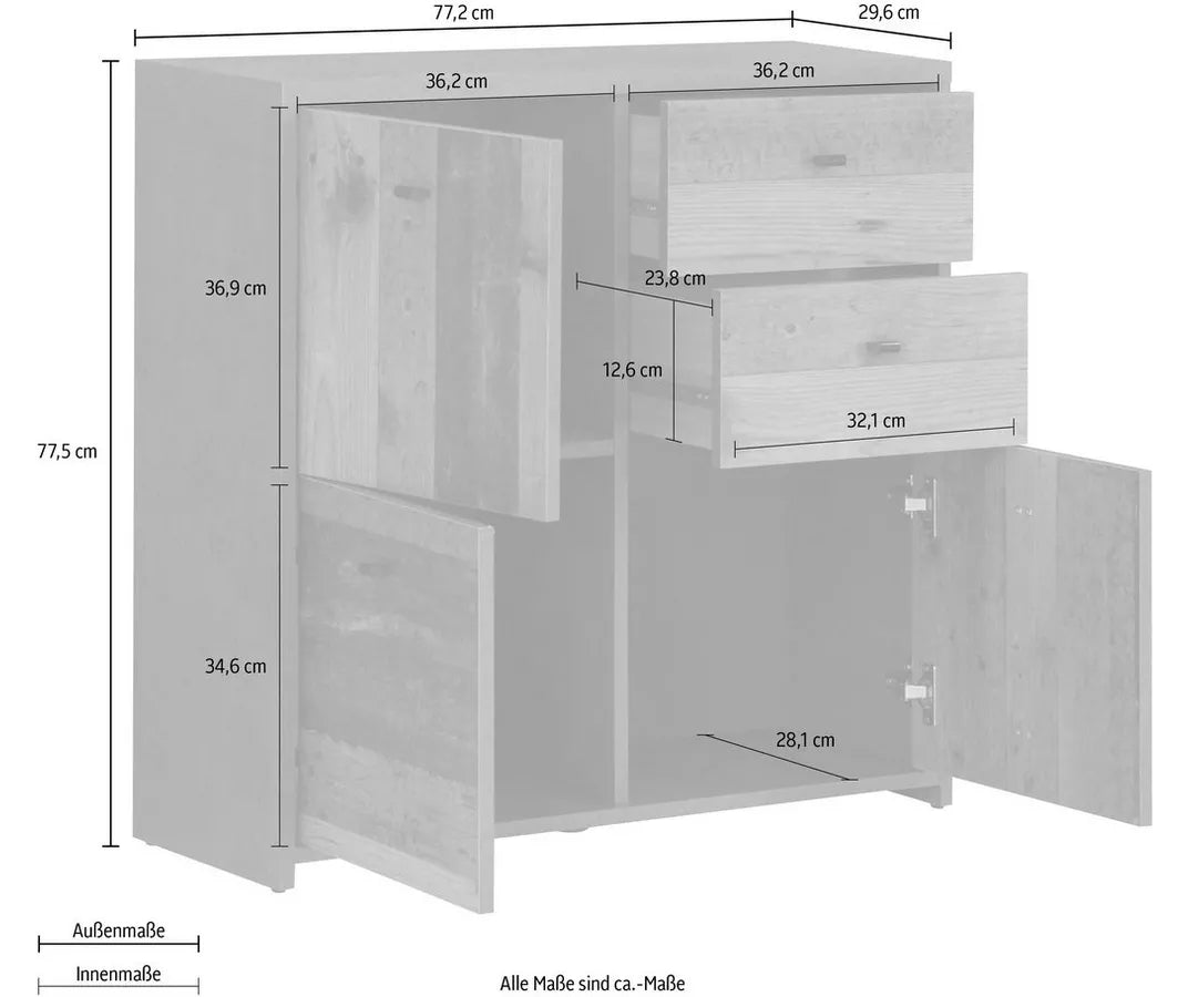 UNICORN Dresser wall unit rural modern brown matt black Width 92 cm Depth 42 cm Height 104 cm