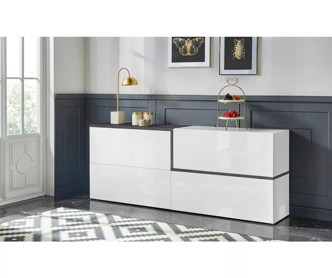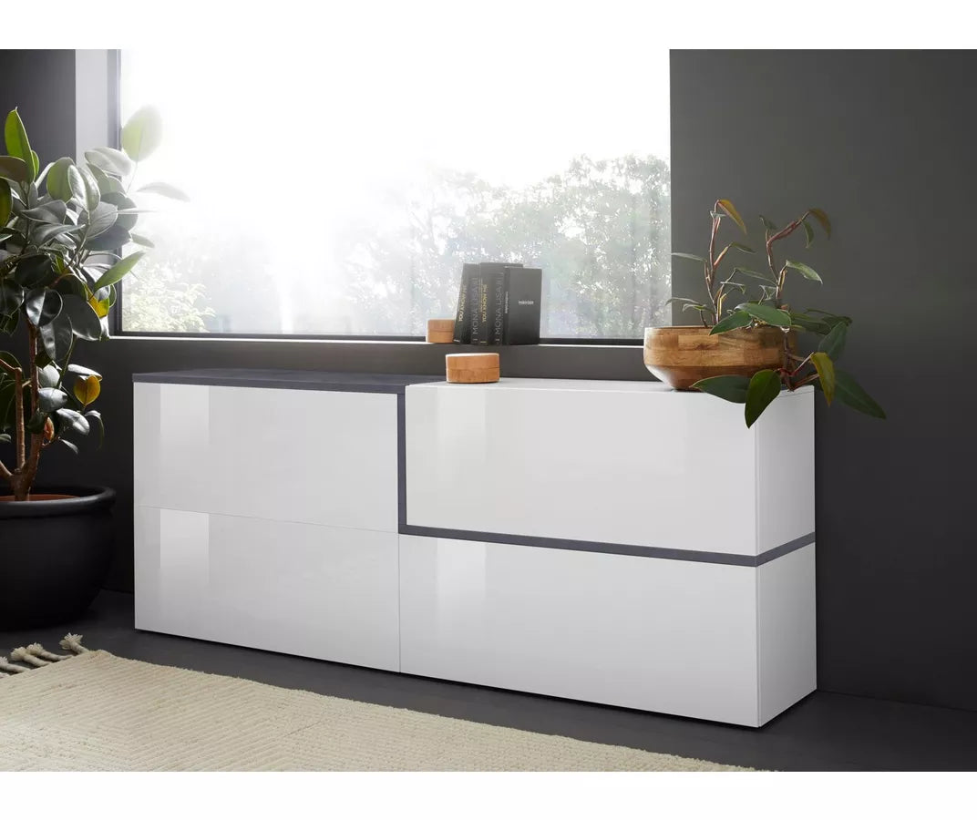 UNICORN Sideboard wall unit modern high-gloss white Width 210 cm Depth 40 cm Height 86 cm
