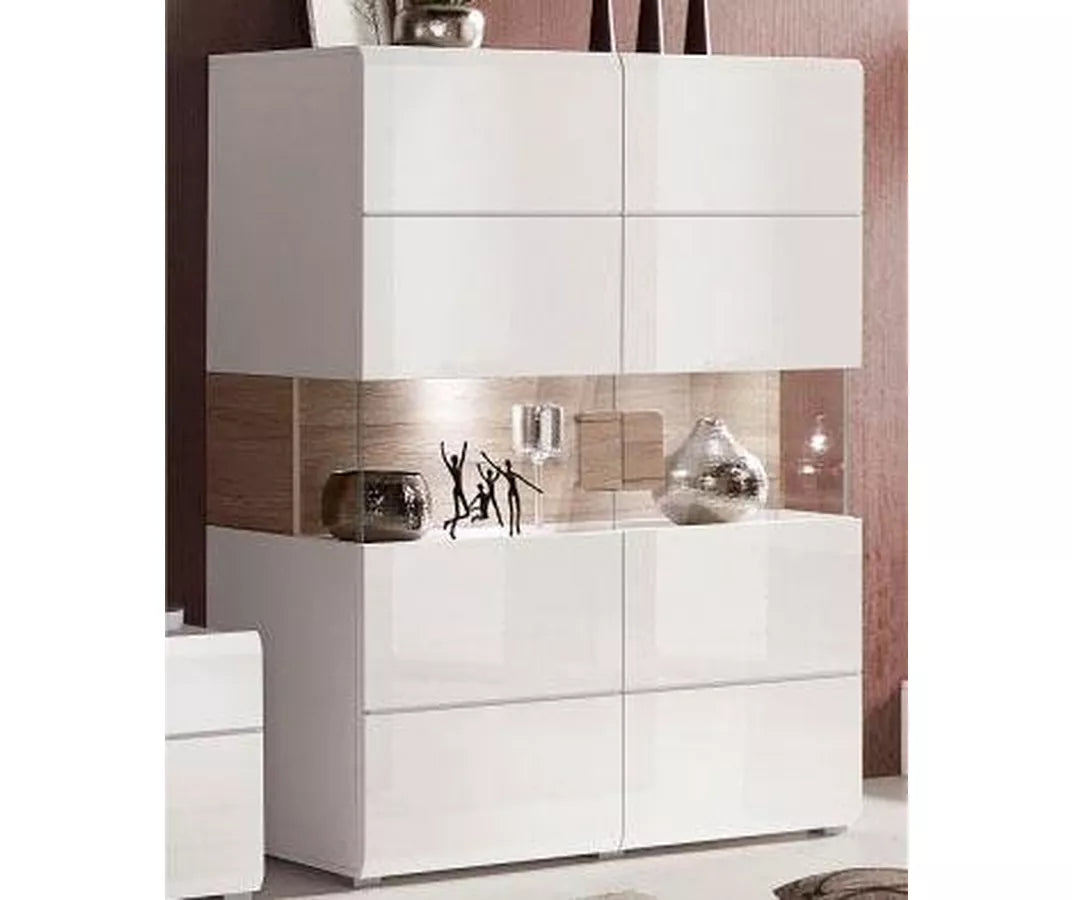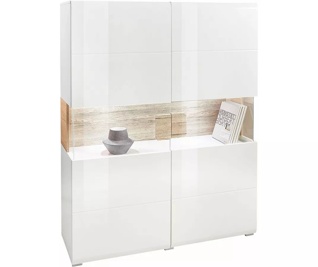 UNICORN Dresser wall unit modern high-gloss white with glass and mood lighting width 152 cm length 121.5 cm depth 37 cm