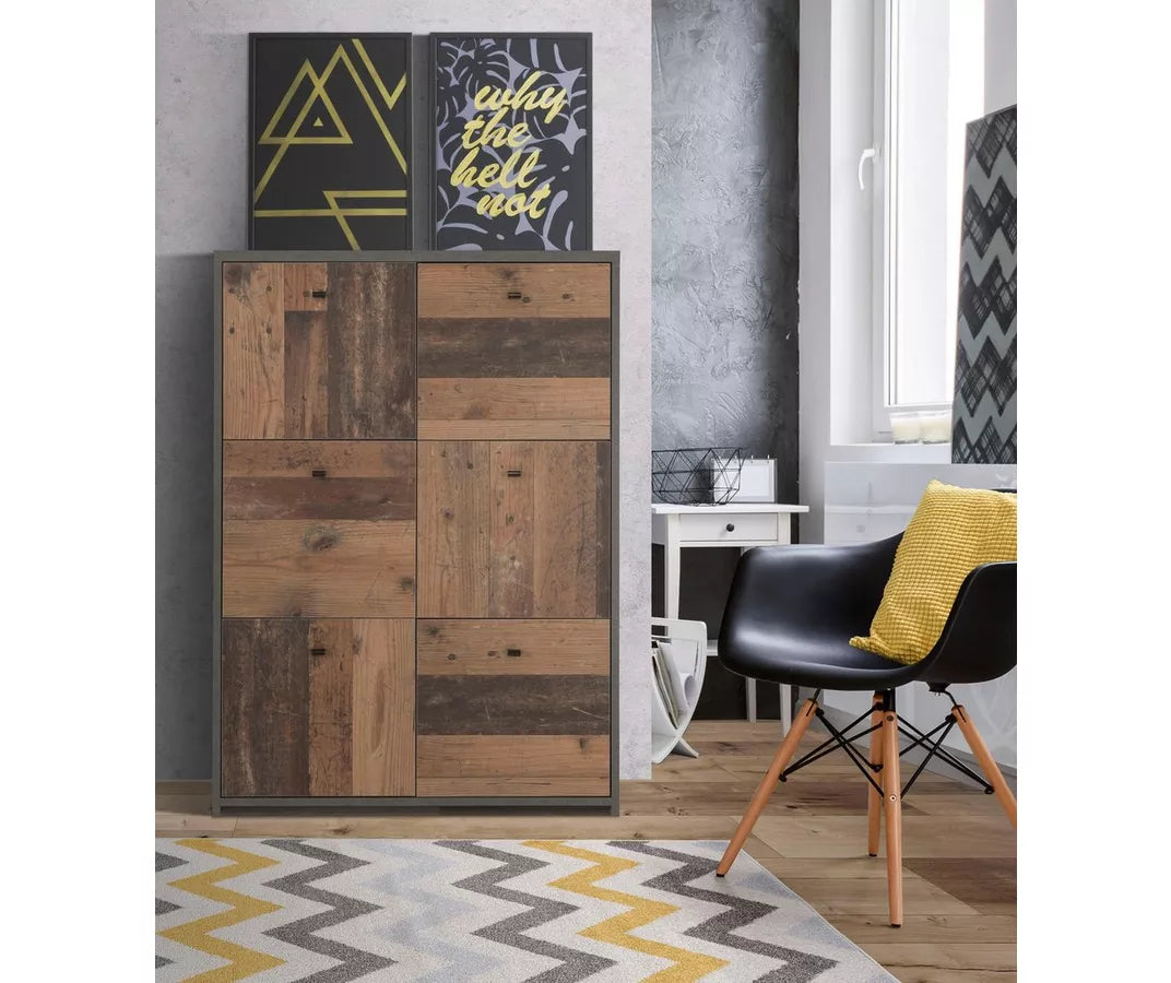 UNICORN Dresser wall unit rural modern brown matt black Width 92 cm Depth 42 cm Height 104 cm