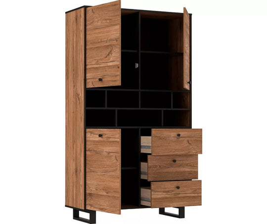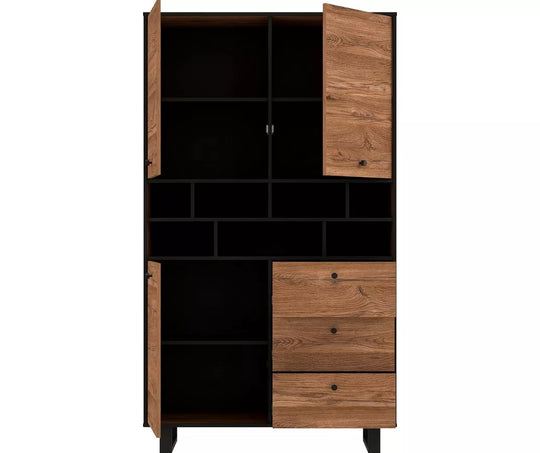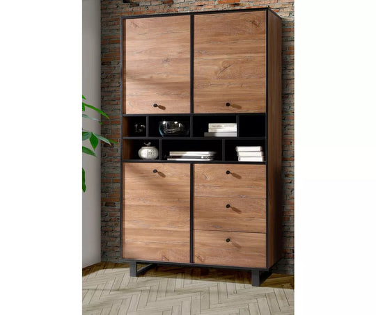 UNICORN Dresser wall unit rural modern oak brown matt black Width 104.9 cm Depth 42 cm Height 182.6 cm