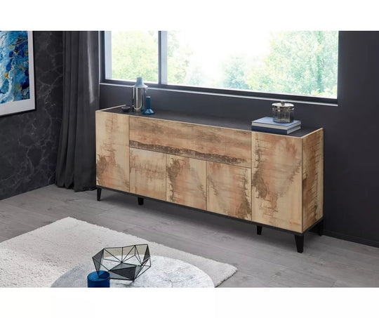 UNICORN Dresser wall unit country white matt anthracite light brown Width 167 cm Depth 44 cm Height 86 cm