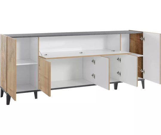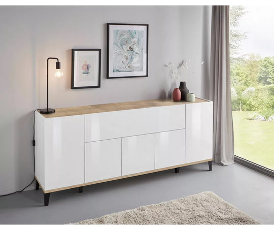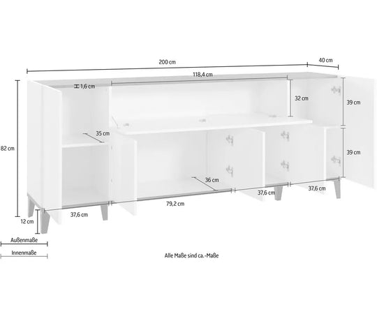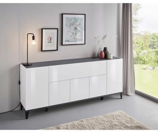 UNICORN Sideboard wall unit modern high-gloss white light brown dark gray Width 200 cm Depth 40 cm Height 82 cm