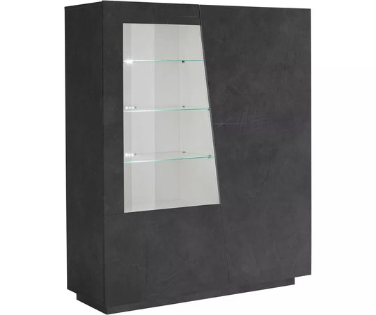 UNICORN Sideboard wall unit modern high-gloss white cement look dark gray with glass Width 146 cm Length 120 cm Depth 43 cm