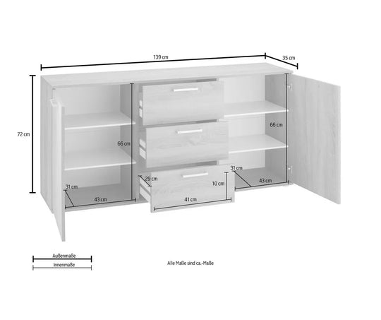 ColorShelf colorWhite Interior colorWhite Body colorWalnut Drawer colorWalnut Door colorWalnut ColorWalnut Design and functionsNumber of shelves4 Number of drawers3 Number of doors2 Shelf typeVariable applications Door typeHinged doors DimensionsWidth139 cm Depth35 cm Height72 cm Internal width...Verkoopprijs €380,00Reguliere prijs €449,00Verkoopprijs €380,00Reguliere prijs €449,00 -